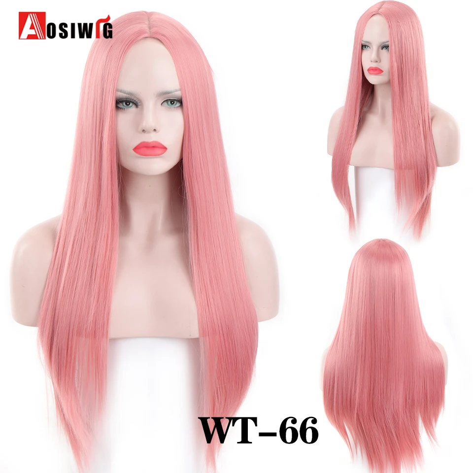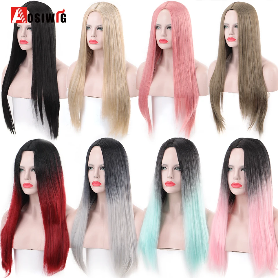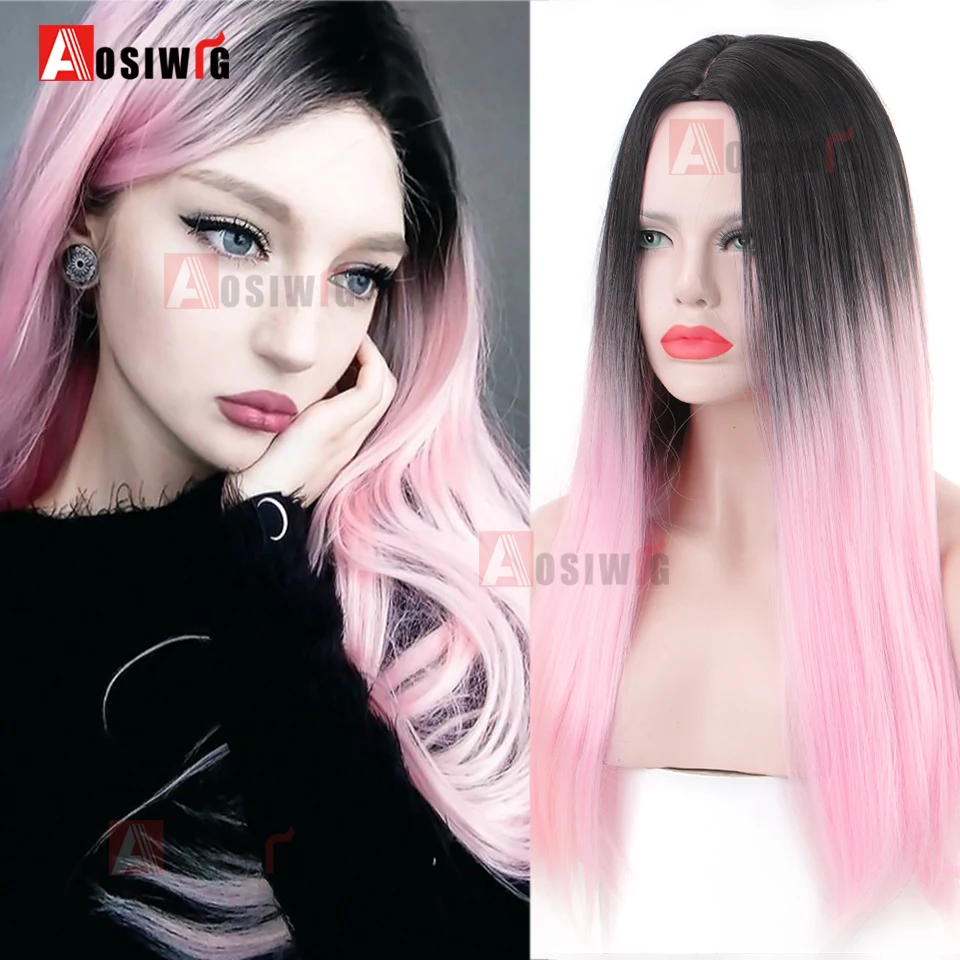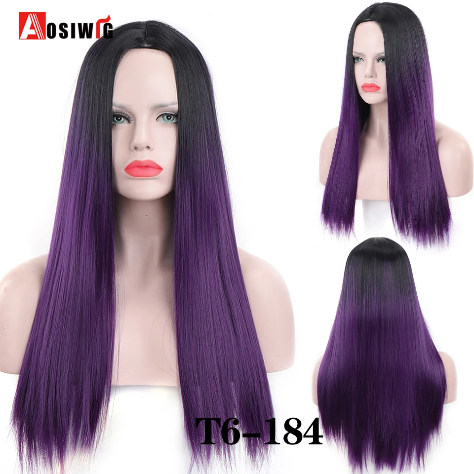 AOSIWIG длинные прямые синтетические натуральные парики Лолиты для женщин черные Омбре розовые синие фиолетовые парики 24 дюйма Косплей парики для вечеринки