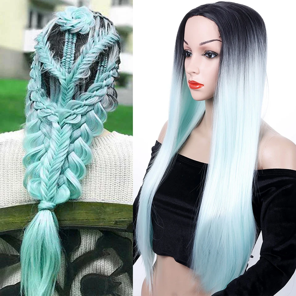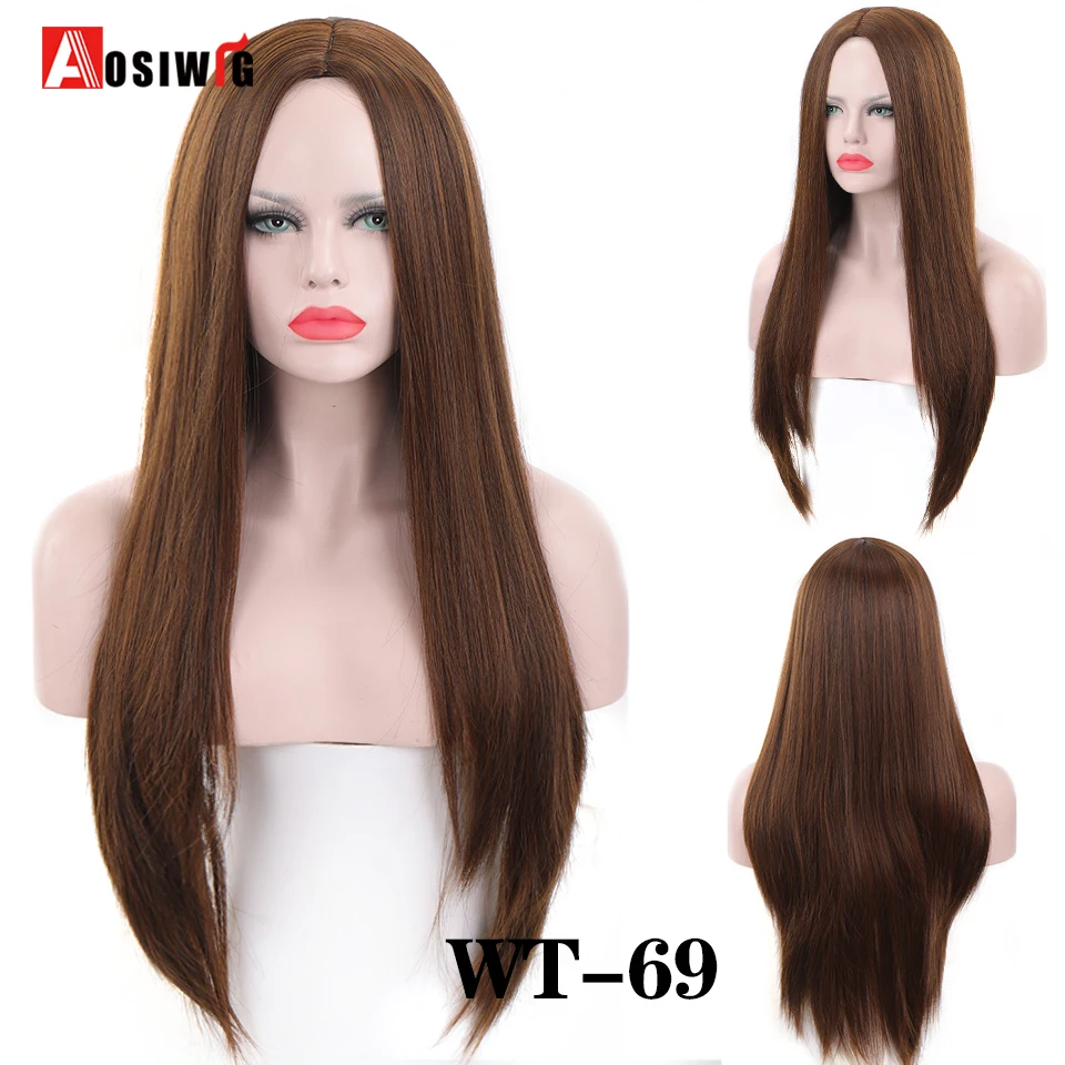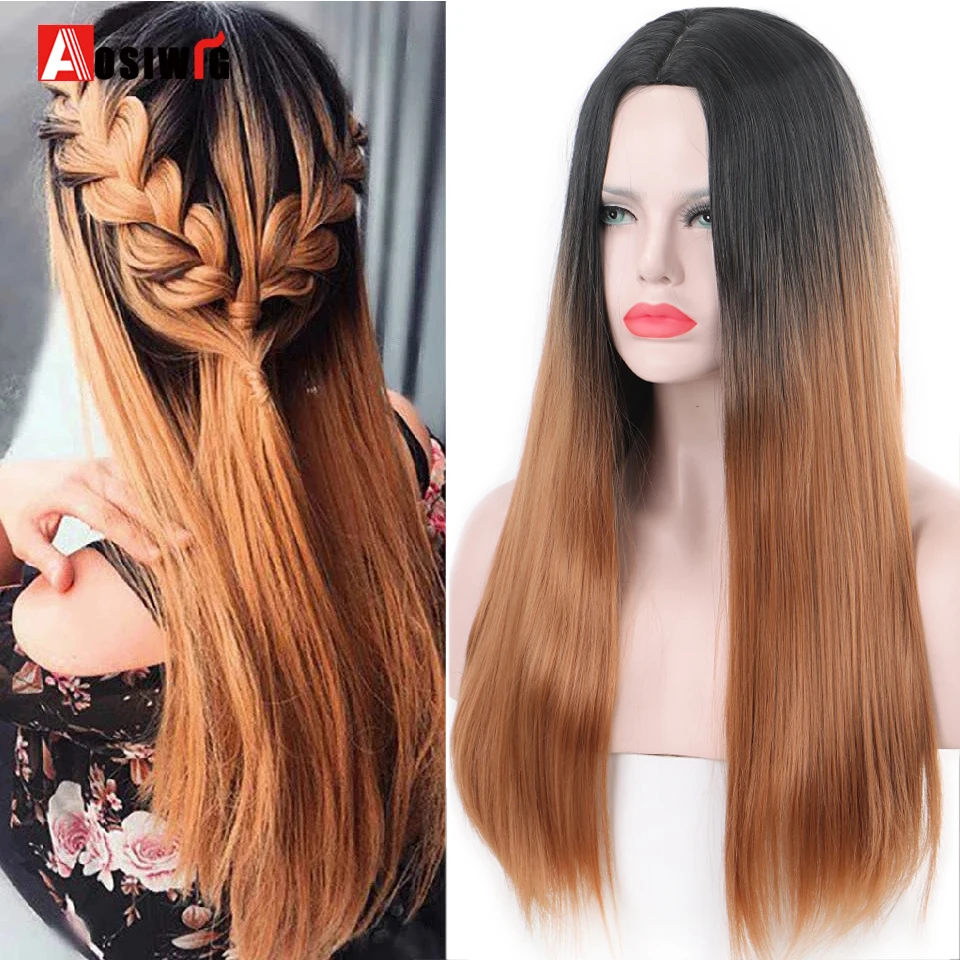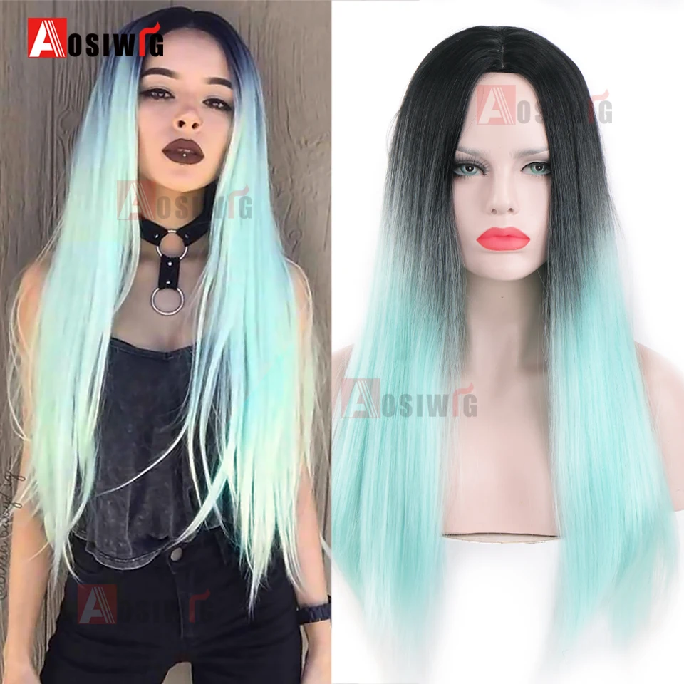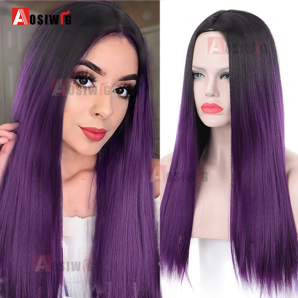 AOSIWIG длинные прямые синтетические натуральные парики Лолиты для женщин черные Омбре розовые синие фиолетовые парики 24 дюйма Косплей парики для вечеринки
