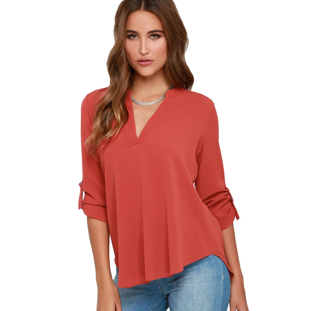 Blusas mujer de moda, женские шифоновые блузки с v-образным вырезом, женская рубашка с длинным рукавом, модная блуза размера плюс, женская блузка, S-5XL