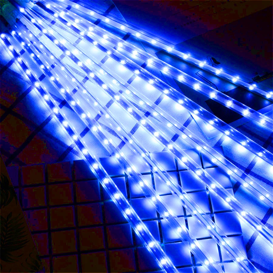 * Яркость-новейший светодиодный чип SMD2835 и обеспечивает угол обзора 360 градусов, что делает падающие дождевые огни намного ярче и красивее.