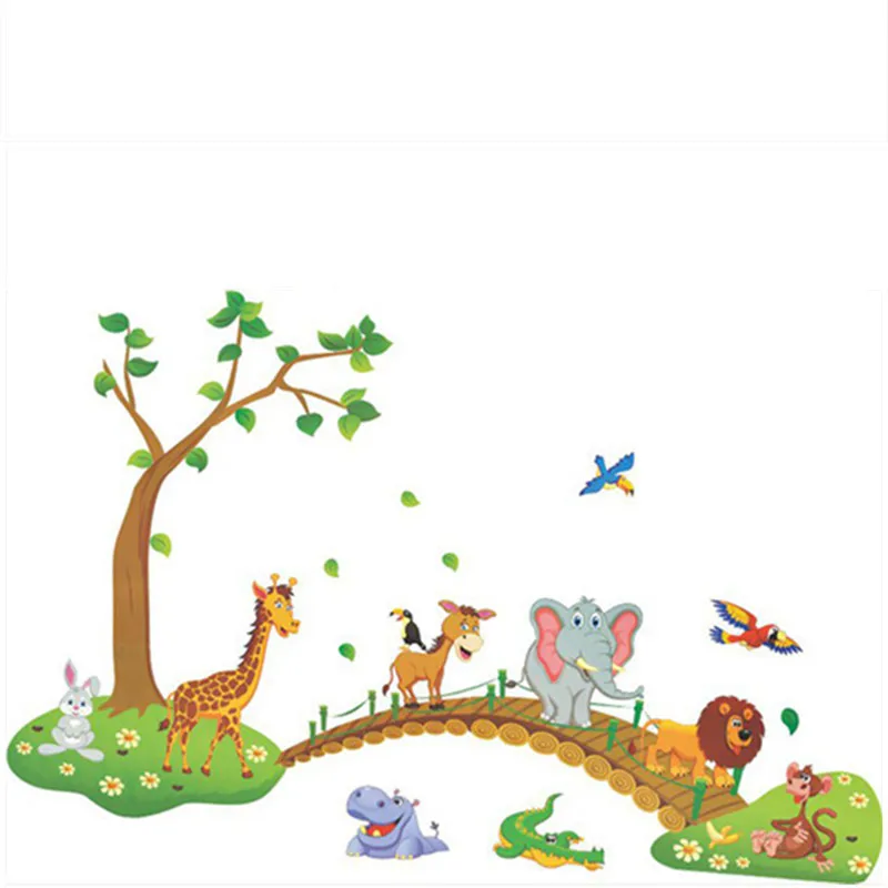 Забавные Животные, настенные наклейки, сафари, зоопарк, 3d Виниловые настенные наклейки, украшение детской комнаты, Детский пазл, Мультяшные обои 90*60 см