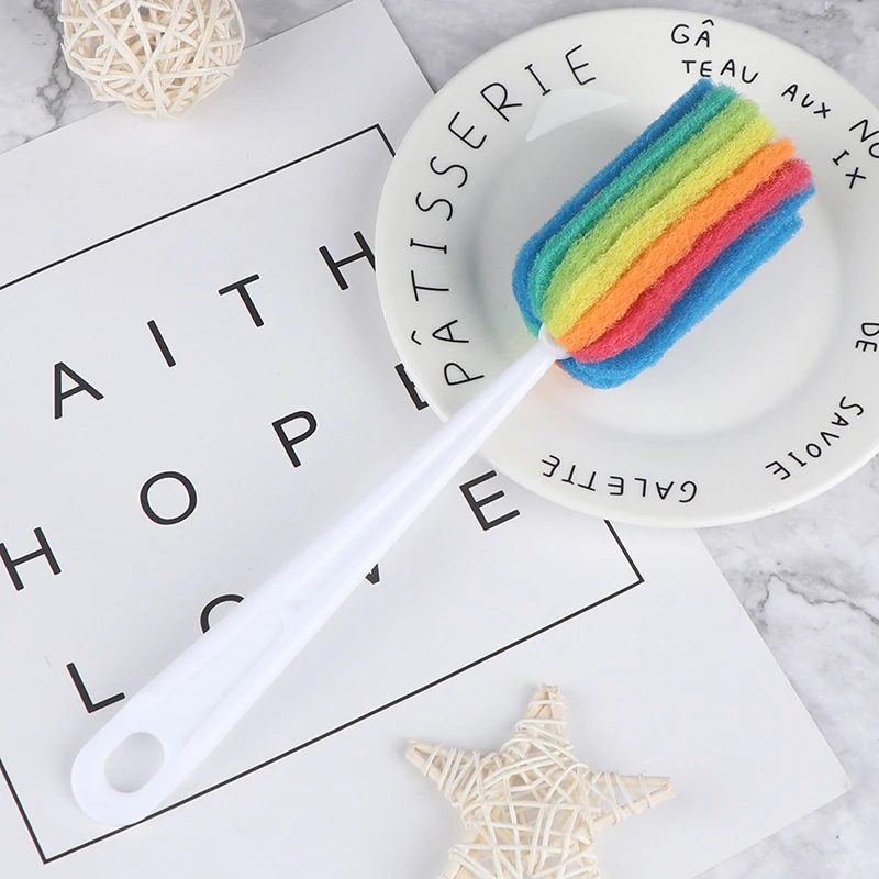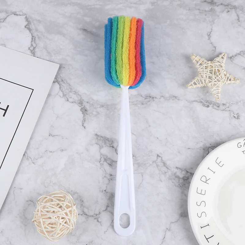 Цветная Съемная чашка для бутылки с водой, стеклянная губка для мытья, чистящая щетка Скраб с ручкой, чистящая посуда, стакан