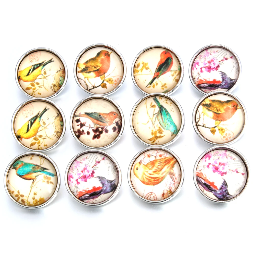 10 шт.лот новые застежки ювелирные изделия винтажные стеклянные застежки с птицами подходят для 18 мм застежки ювелирные изделия для защелок Серьги Браслет