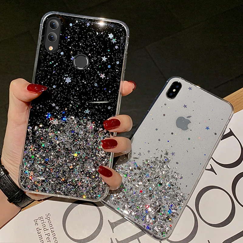 Блестящий серебристый чехол звездного неба для Huawei P30 P20 P40 L...