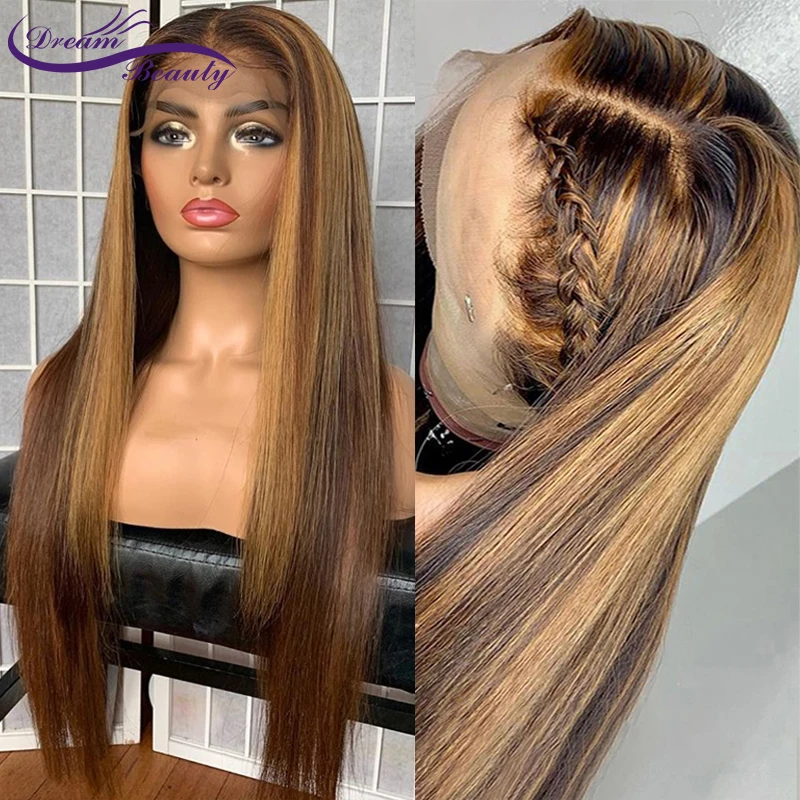 Прямые медовые блондинки Омбре, хайлайтер 13x 4, парики из натуральных волос 4x4, бразильские выщипанные передние парики