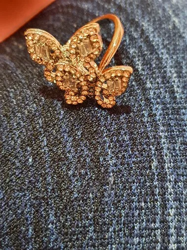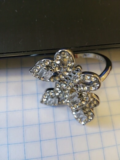 Форма и расположение камешков иначе, чем в заявленном фото. В заявлением кольце камни огранки багет, а прислали- круглой формы да ещё в середине крылишек присутствуют камушки, которых нет в заказанном товаре. Разительно отличается от заказанного кольца.