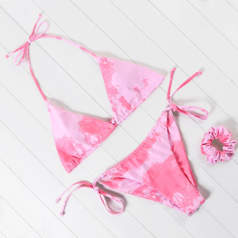 Женский купальник пуш-ап с леопардовым принтом, сексуальные бразильские стринги с низкой талией, купальный костюм на завязках с краской, 2020