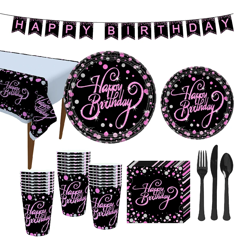 Набор одноразовой посуды для дня рождения, бумажный баннер золотого...