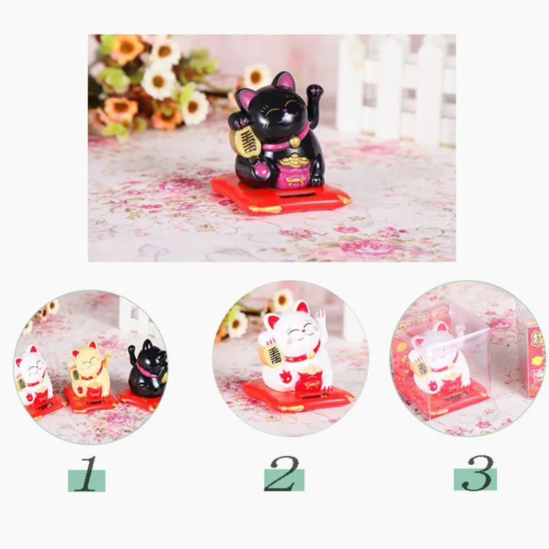 На солнечной энергии, счастливое богатство, развевающаяся кошка манэки Неко, развевающаяся рука, beconing Fortune Cat, домашний офис и украшение автомобиля