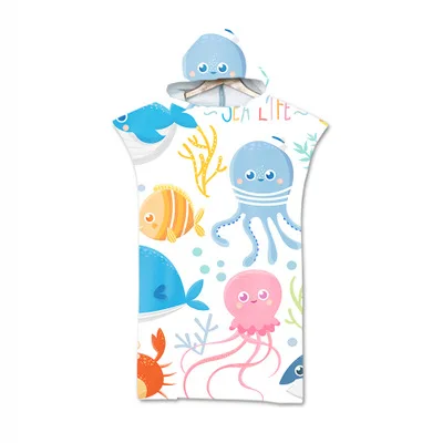 Халат из микрофибры с милым принтом, пончо с капюшоном, пляжное полотенце, полотенце с капюшоном для плавания, Пляжная Купальник для серфинга