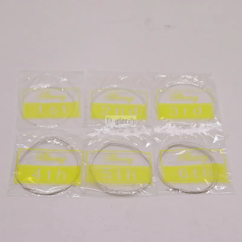 Цвет: серебристыйМатериал: нейлонКоличество: 6 шт. (продается набором, 1 набор = 6 шт.)Посылка: 6 шт./1 комплект струн для гитары