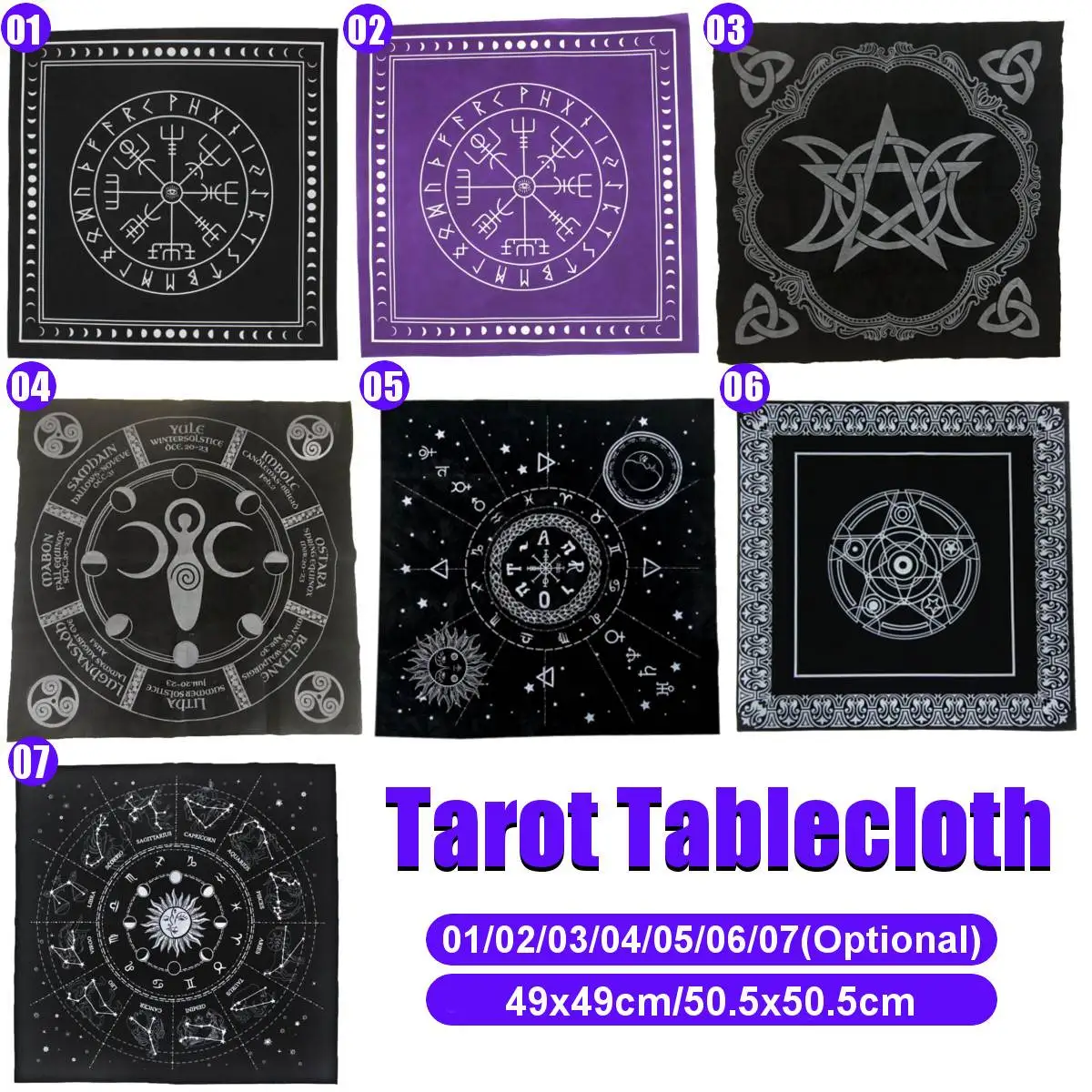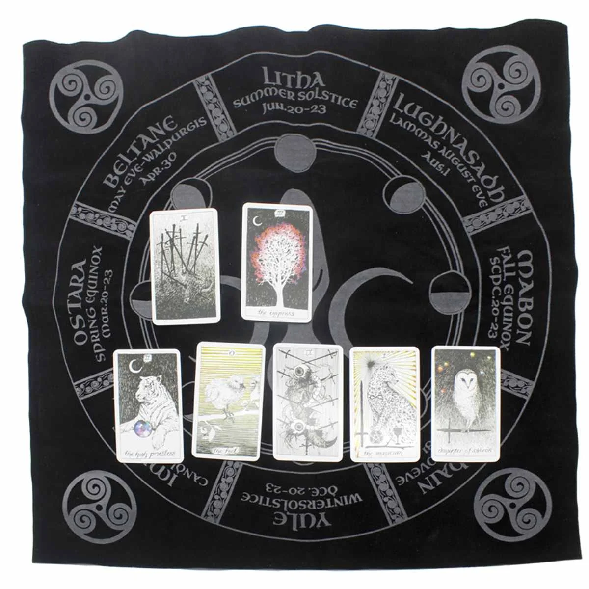 Скатерть Таро 50,5x50,5 см, Тройная Луна, пентаграмма, языческий алтарь, фланелевая ткань Таро для настольных игр, развлечений