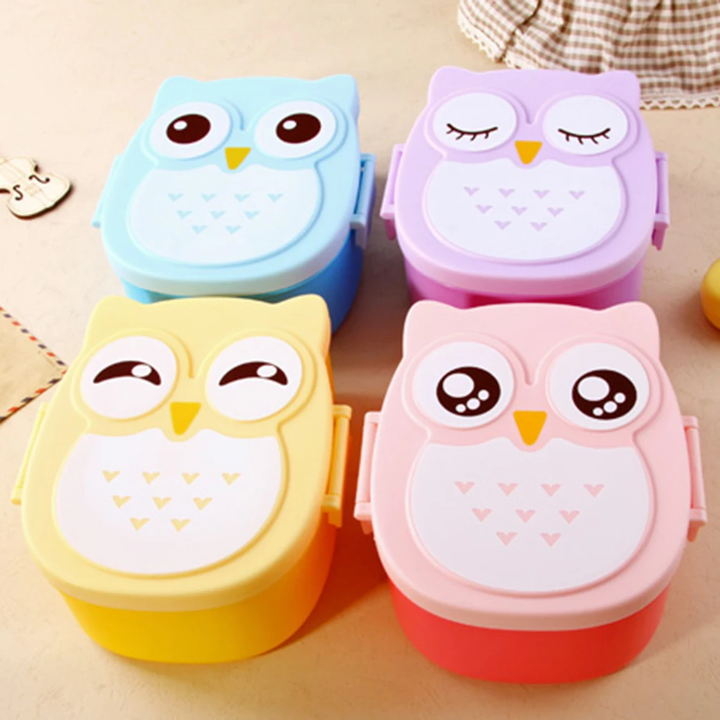 Ланч-бокс с милым мультяшным рисунком совы, контейнер для еды, портативный детский Студенческая коробка для завтрака Ланч-бокс с вилкой и ложкой