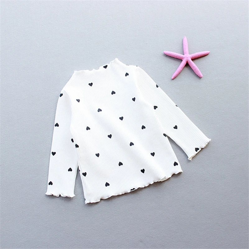 Новинка 2020, зимняя футболка для маленьких девочек с длинным рукавом и круглым вырезом, с сердечками, хлопковая Детская футболка с длинным рукавом