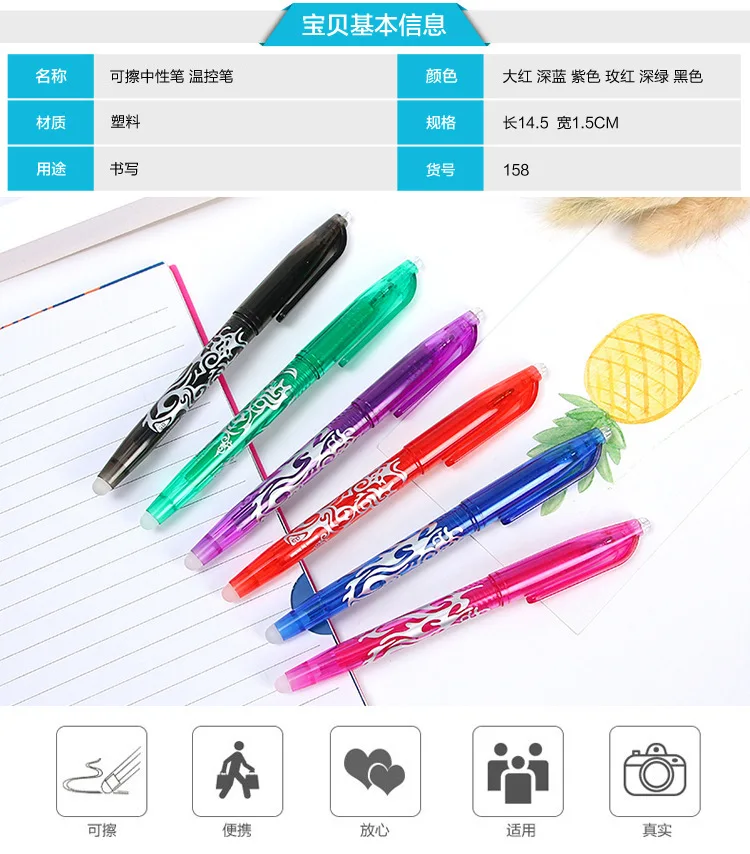 Шариковые ручки, стираемые, с контролем температуры, цветные, для школы