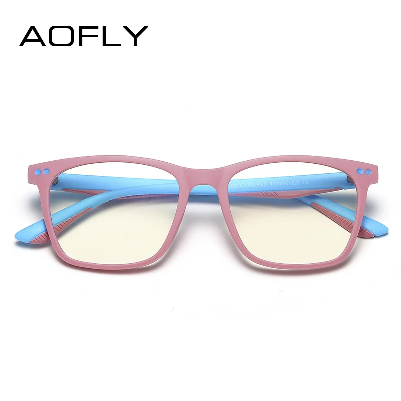 AOFLY брендовые дизайнерские квадратные голубые световые блокирующие очки, детские оптические очки для мальчиков TR90, гибкая розовая оправа, диоптрийные очки