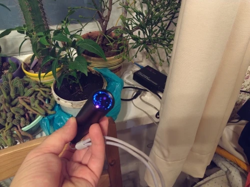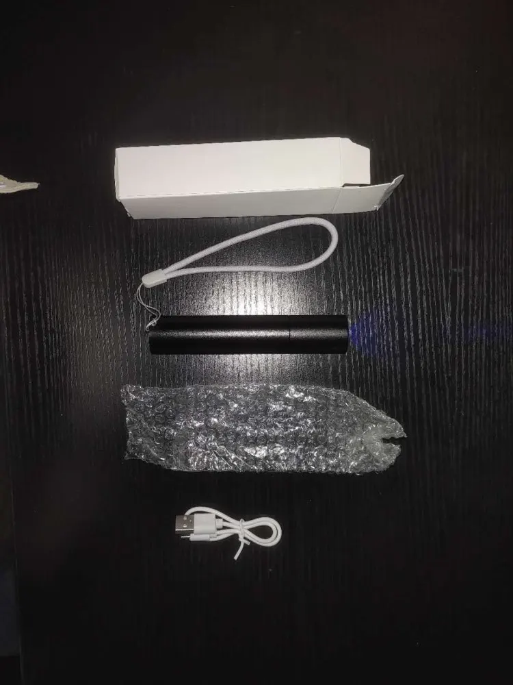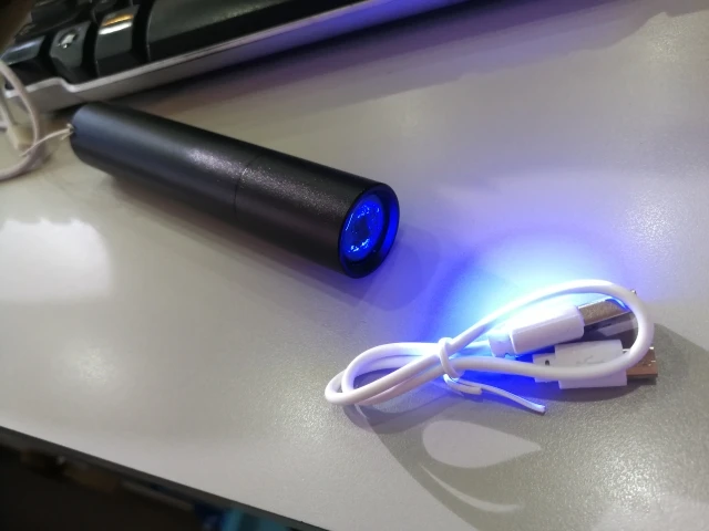 Получал в пятёрочке,фонарь вроде выглядит надёжно,в комплекте короткий USB шнурок.Имеет 2 режима свечения,у меня вроде не греется хотя я не долго его проверял.Стоит тёмная линза не знаю снимается она или нет.Работает вроде не плохо, бактерии в туалете и ванной точно увидел,купюр для проверки пока нет.