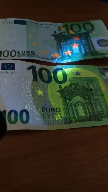 свечение *пятен* достаточно яркое...подсветка купюр так же замечательная...товаром доволен