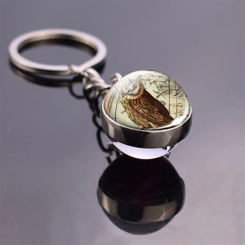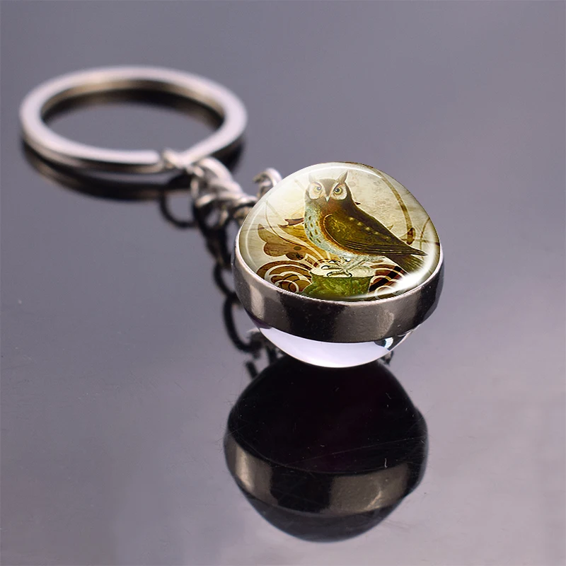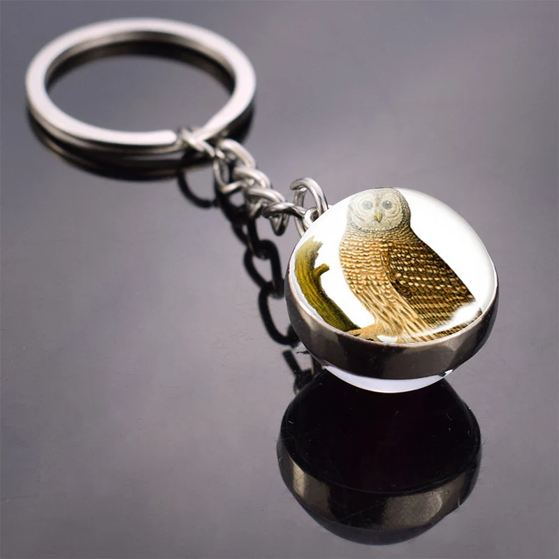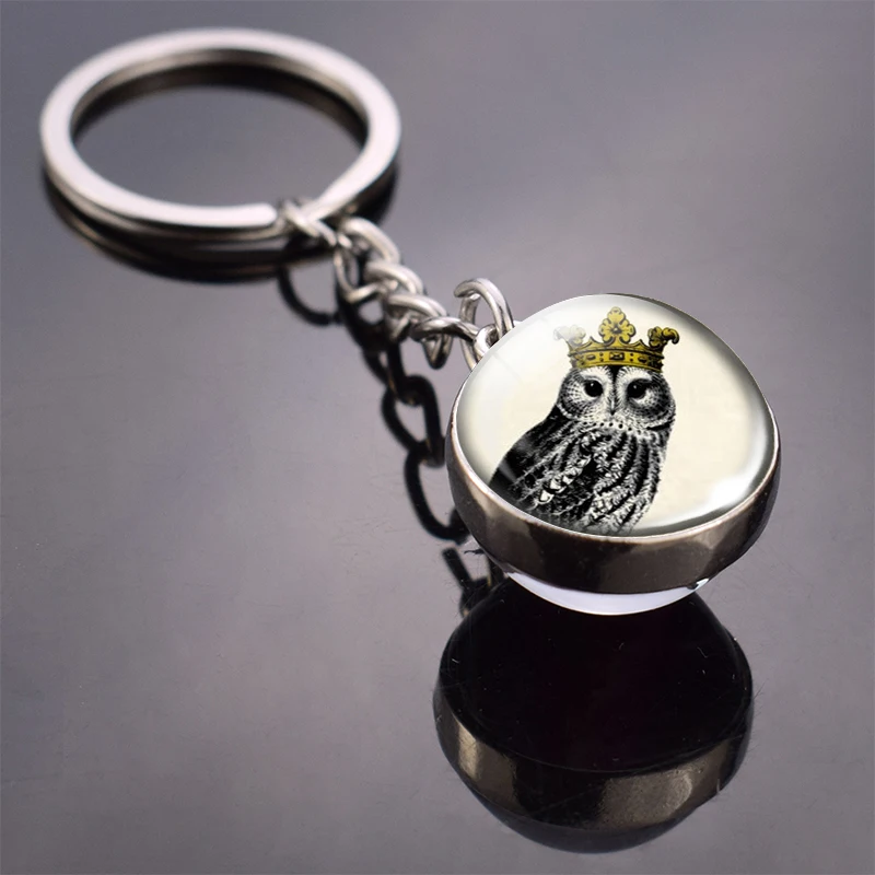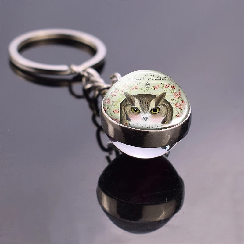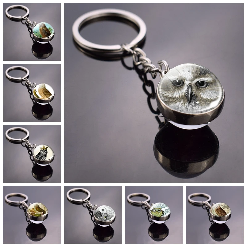 Милые животные брелок с узором Совы двухсторонний стеклянный шар брелок Инь Янь Сова Подвеска Брелок