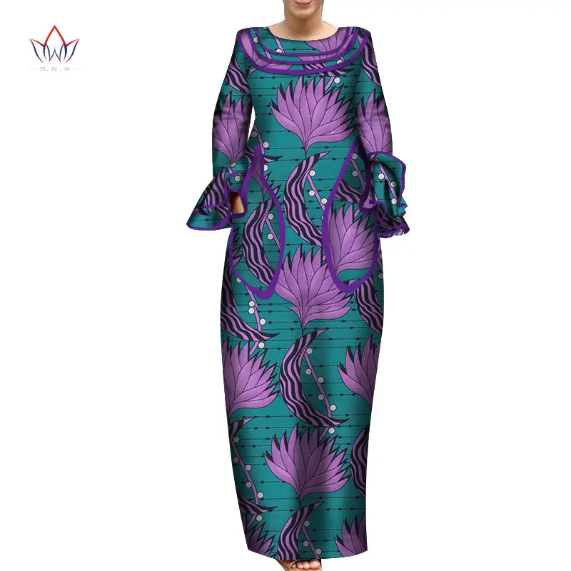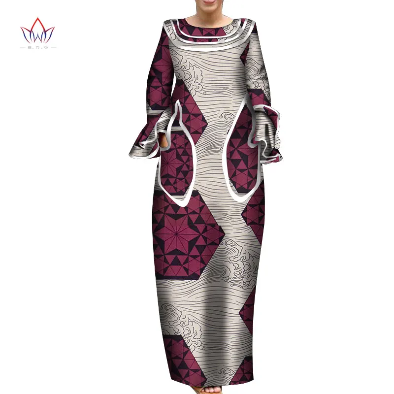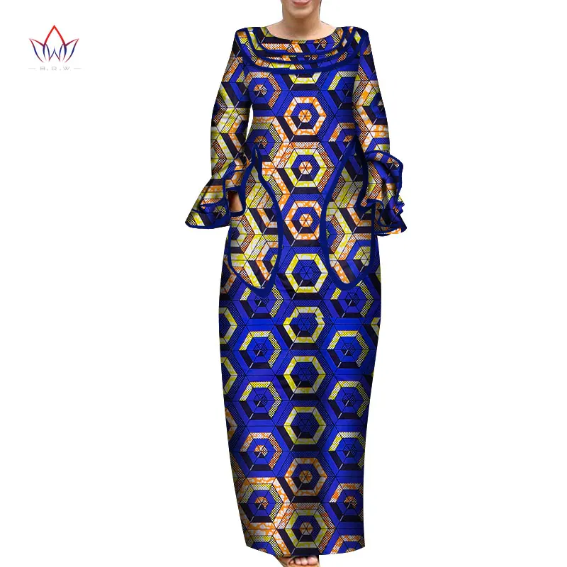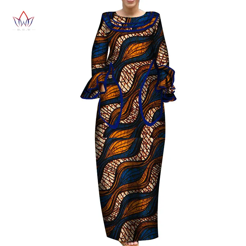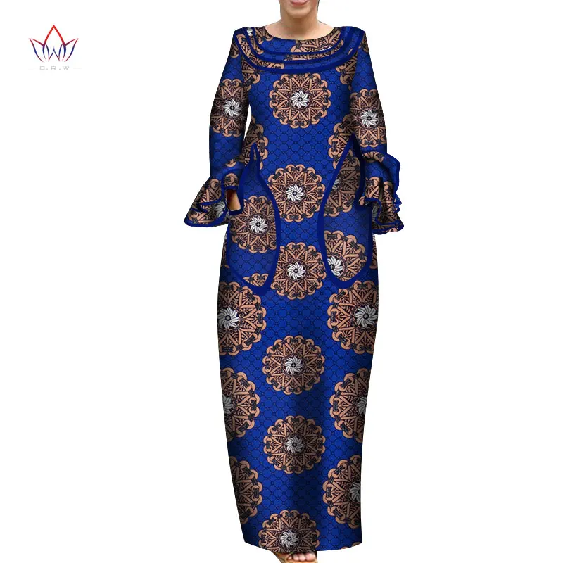 2021 африканские Длинные платья для женщин Модный дизайн Дашики африканская женская одежда базин богатый О-образный вырез платье с длинным рукавом WY6338