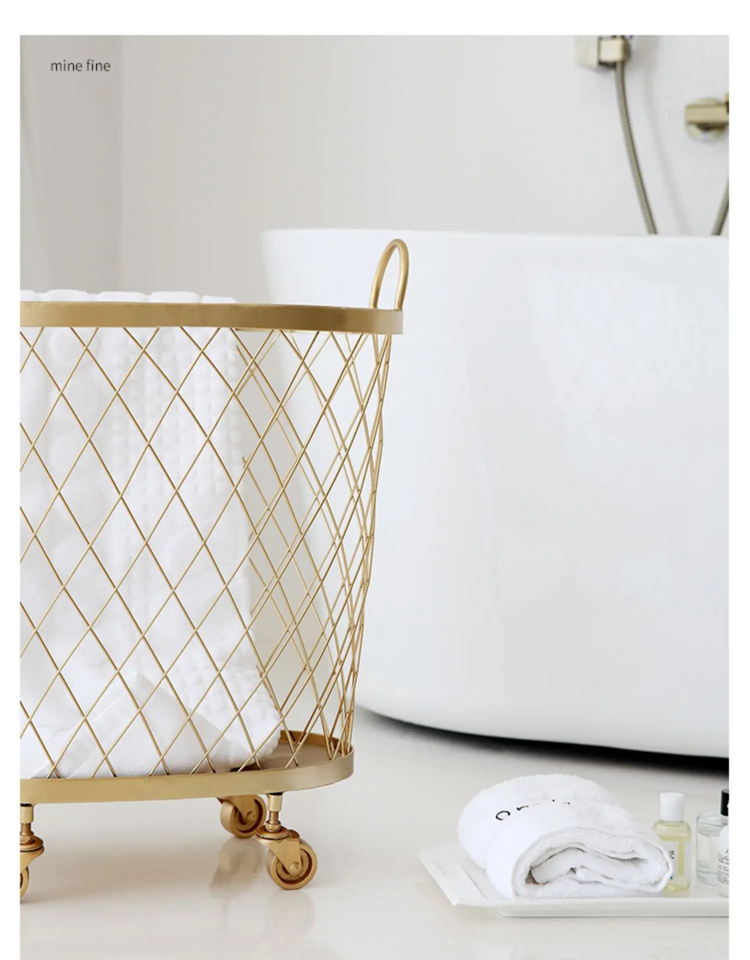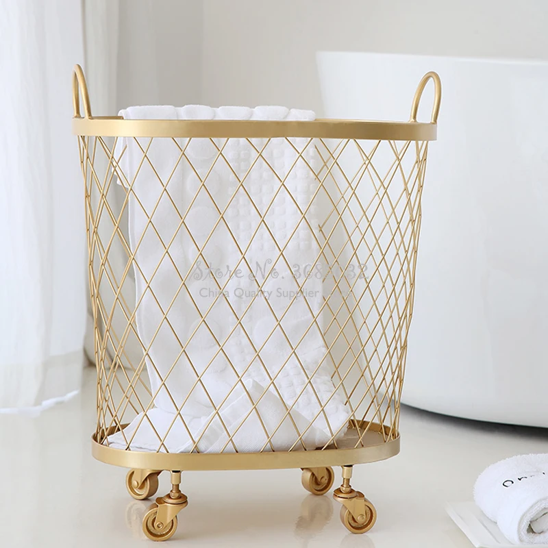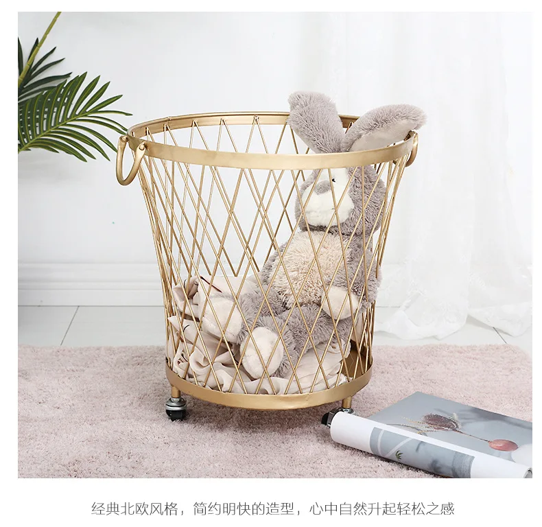 Новая золотая модная металлическая корзина для хранения цветной грязной одежды ручка корзина для белья домашний креативный Органайзер с колесами