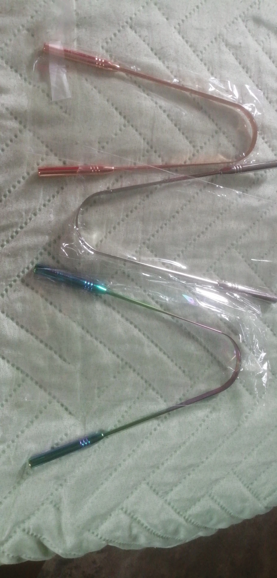 Мне нравится. Выглядит точно так же, как на картинке. Это более приятно использовать, чем мой старый очиститель языка из нержавеющей стали, края гладкие. Я использую его в течение 3 дней, на данный момент нет обесцвечивания.