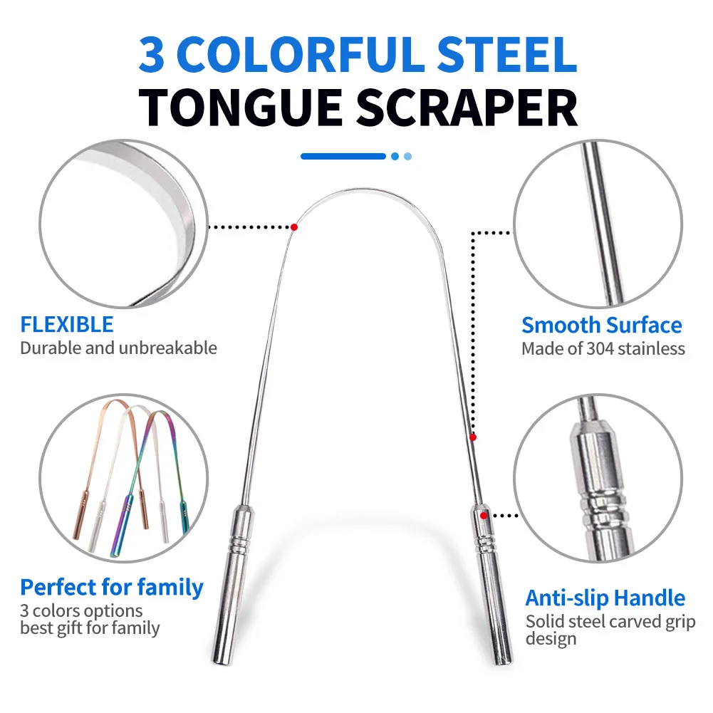 Y-kelin 3 цвета из нержавеющей стали скребок для языка металлический язык свежее дыхание Чистящая зубная щетка с покрытием гигиена полости рта
