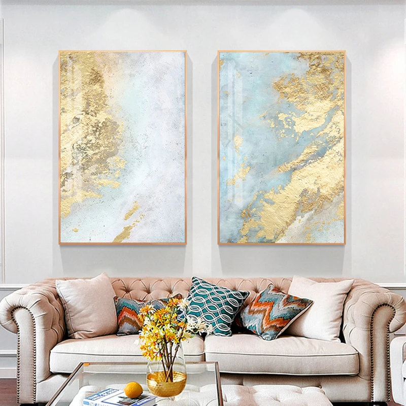Ты. Nodic светильник-синий холст картина абстрактная Настенная картина для гостинойБольшая комната Куадрос панно большой золотой плакат и печать