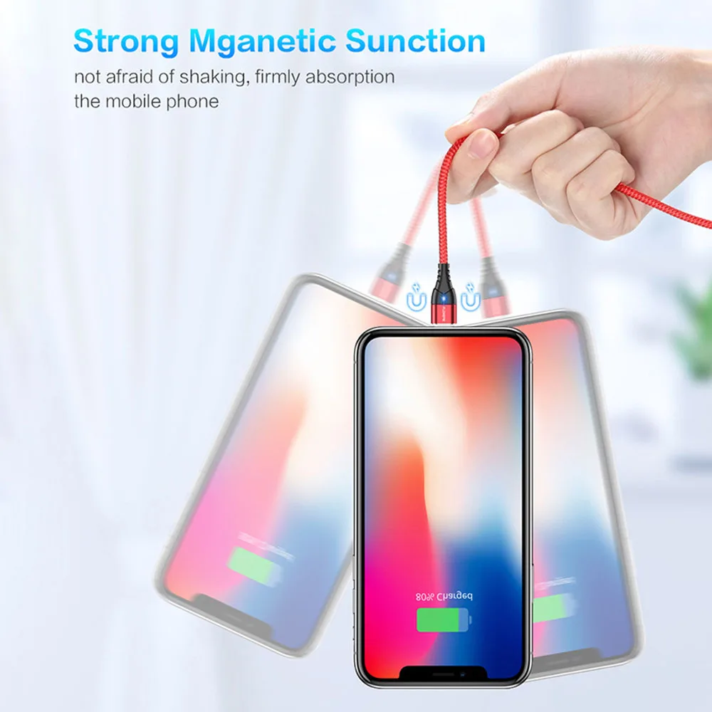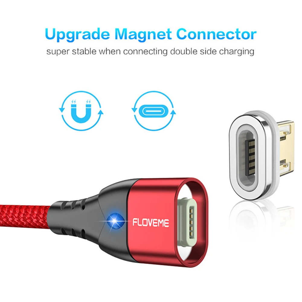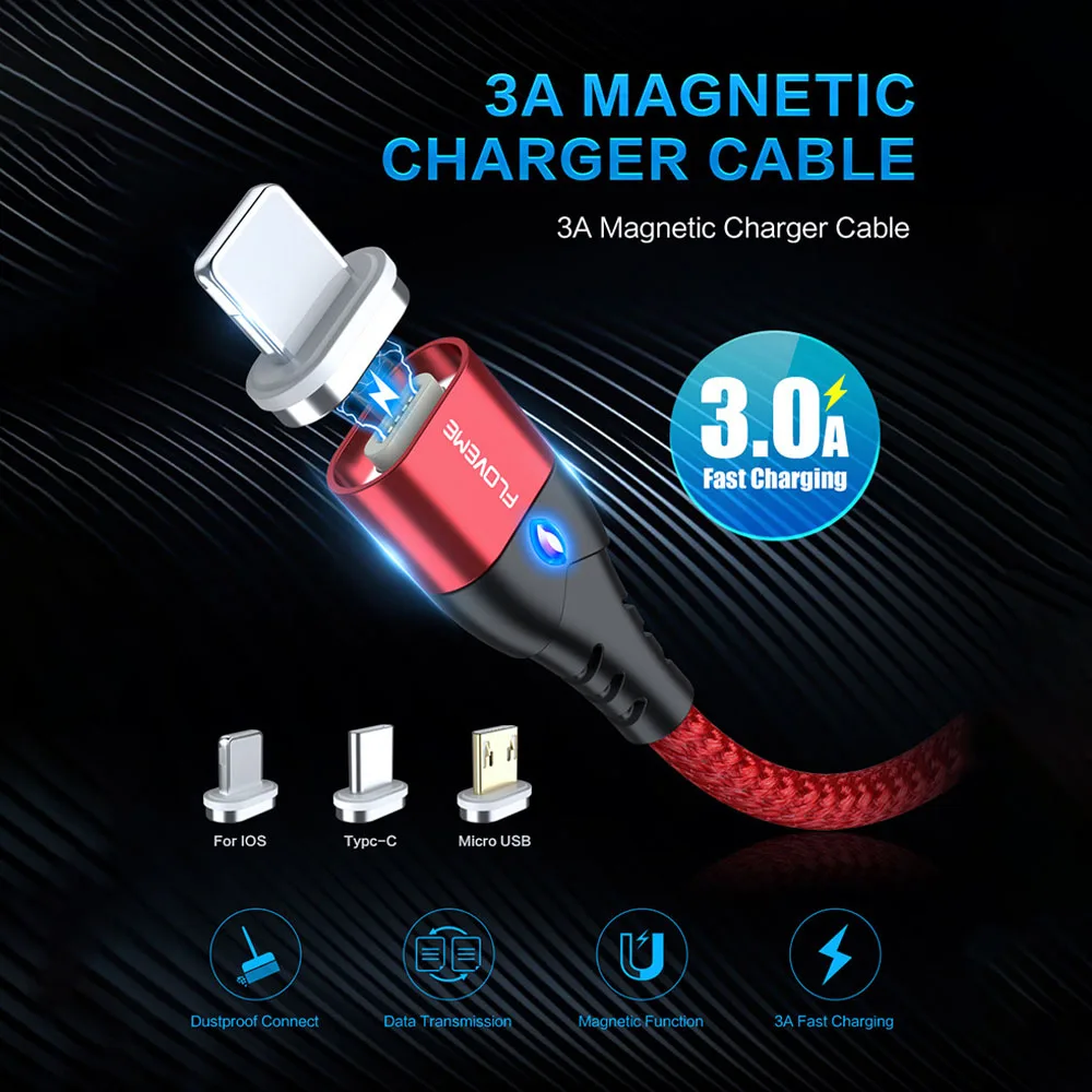 FLOVEME 3A Магнитный USB кабель type C Micro 3 в 1 кабель для iPhone кабели 2 м светодиодный кабель быстрой зарядки для samsung кабель зарядного устройства Антиразрушенная сетка для iphone 7 6 для Huawei Samsung Xiaomi