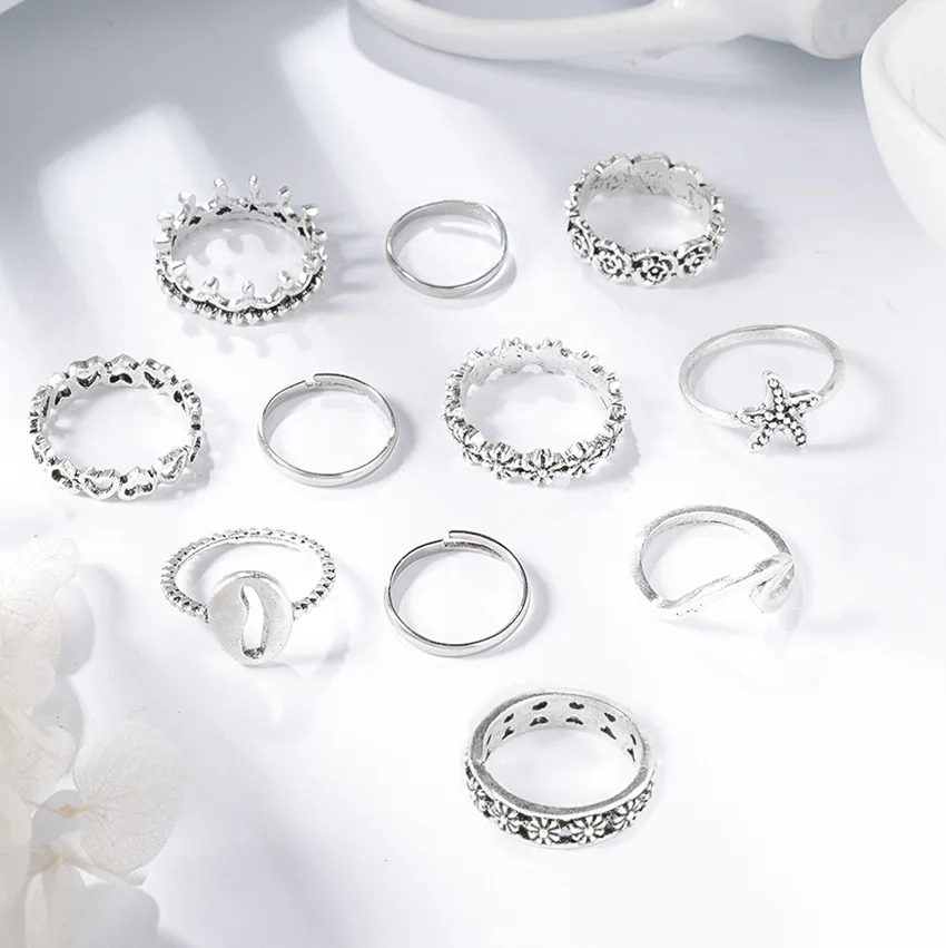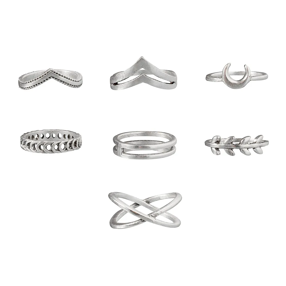 Модные кольца 7 шт.компл., винтажный набор колец серебряного цвета ...