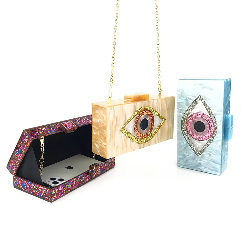 Сумка со сглаза, модная цветная акриловая сумка, женская сумка через плечо, клатчи, дамские вечерние сумки, блестящая вечерняя сумочка, кошелек