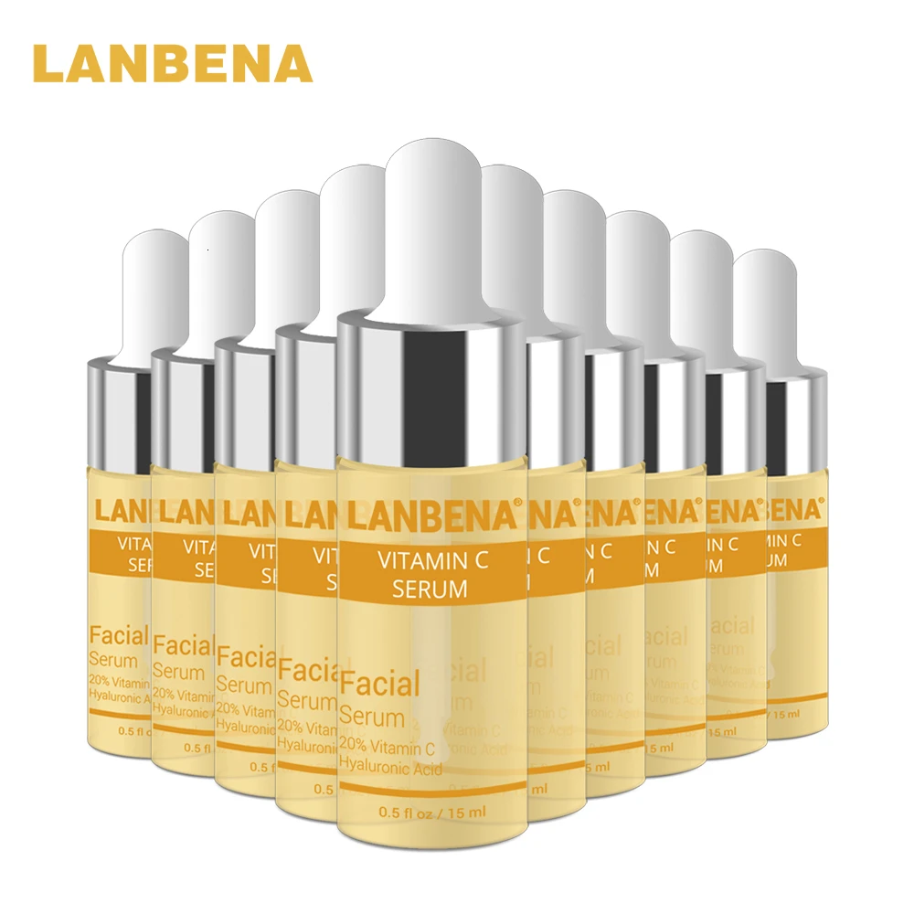 LANBENA с витамином C отбеливание Сыворотки лица с гиалуроновой кислотой, улиточный крем для удаления веснушек на водной основе для осветляющая темные пятна анти-старения, 10 шт.