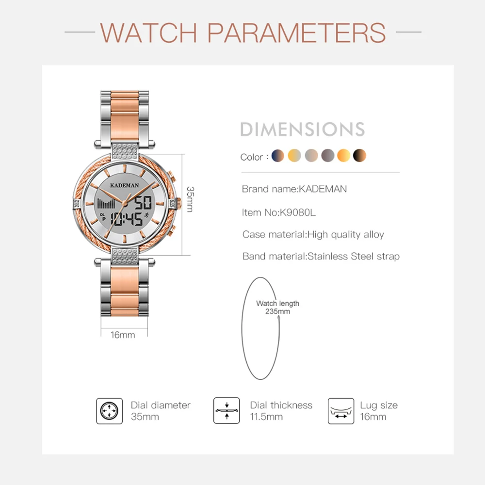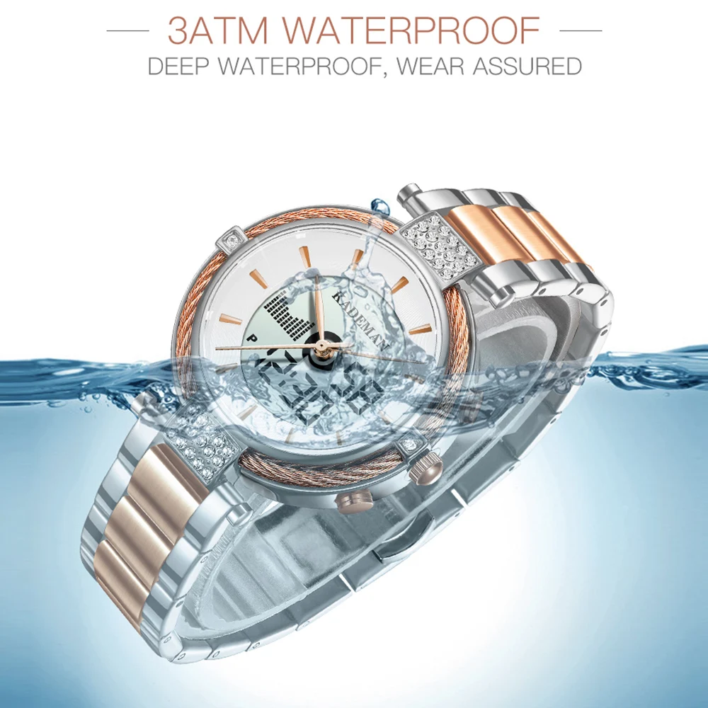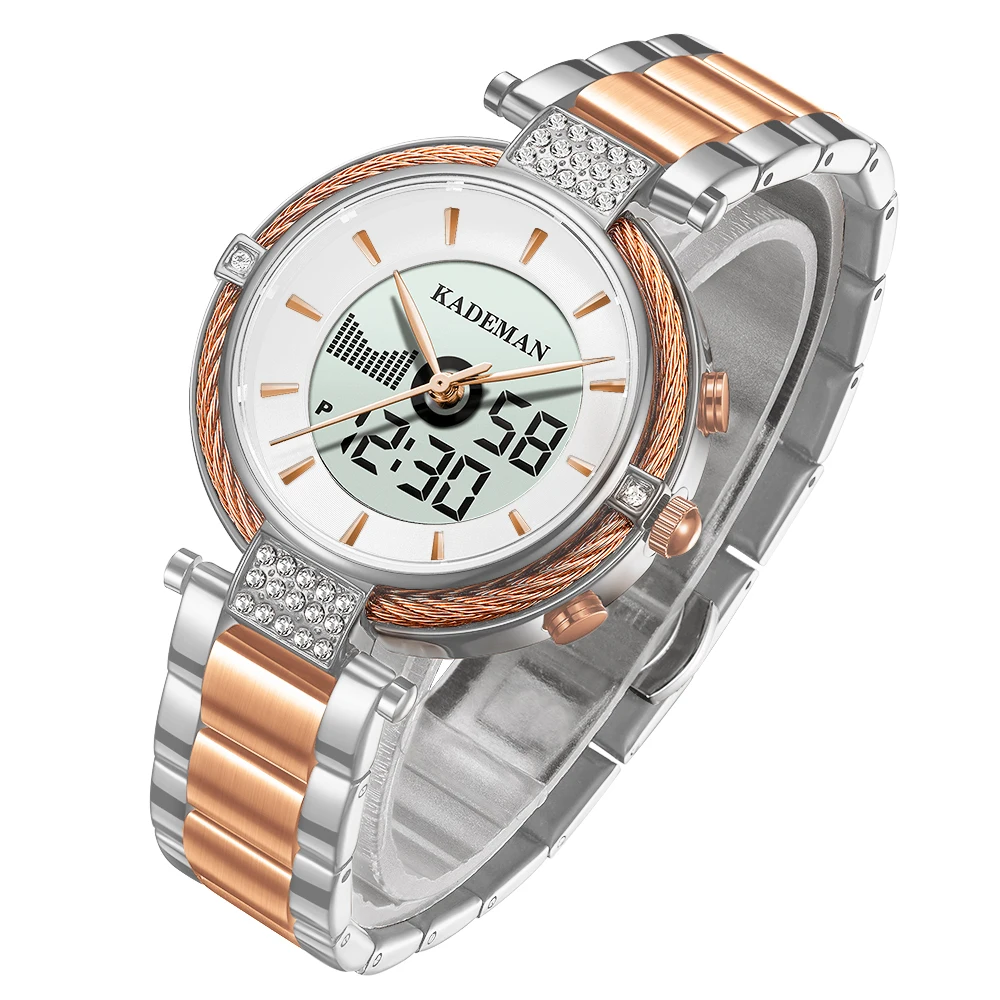 Новые женские часы K9080 Kademan с двойным жк-дисплеем, элегантные Топ, роскошные модные водонепроницаемые женские кварцевые наручные часы, женские часы