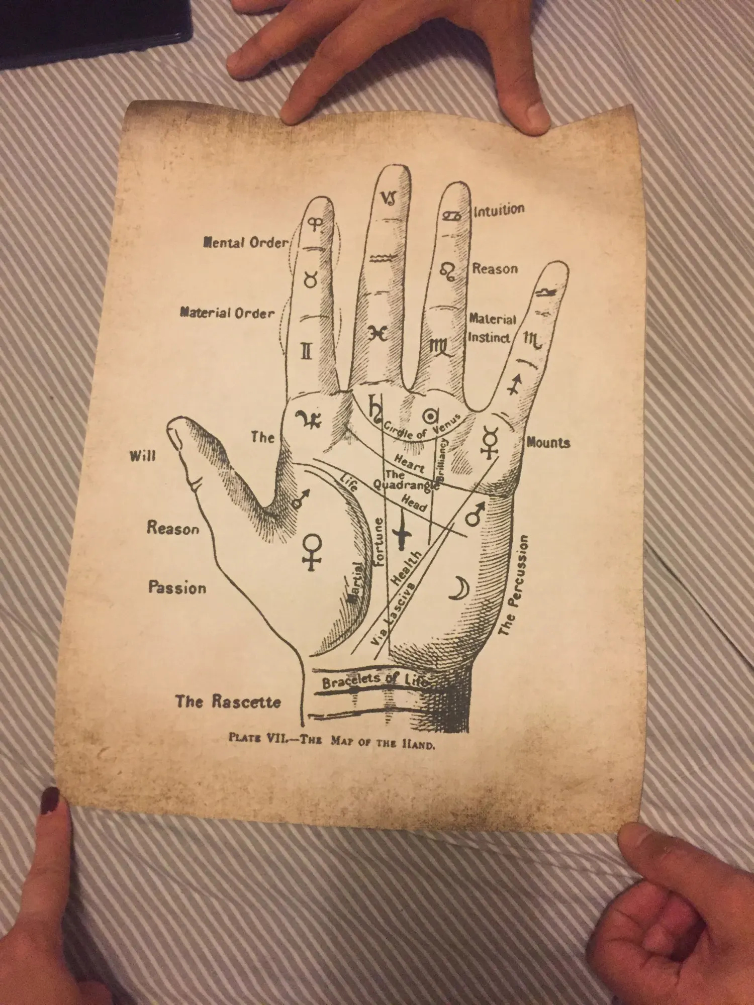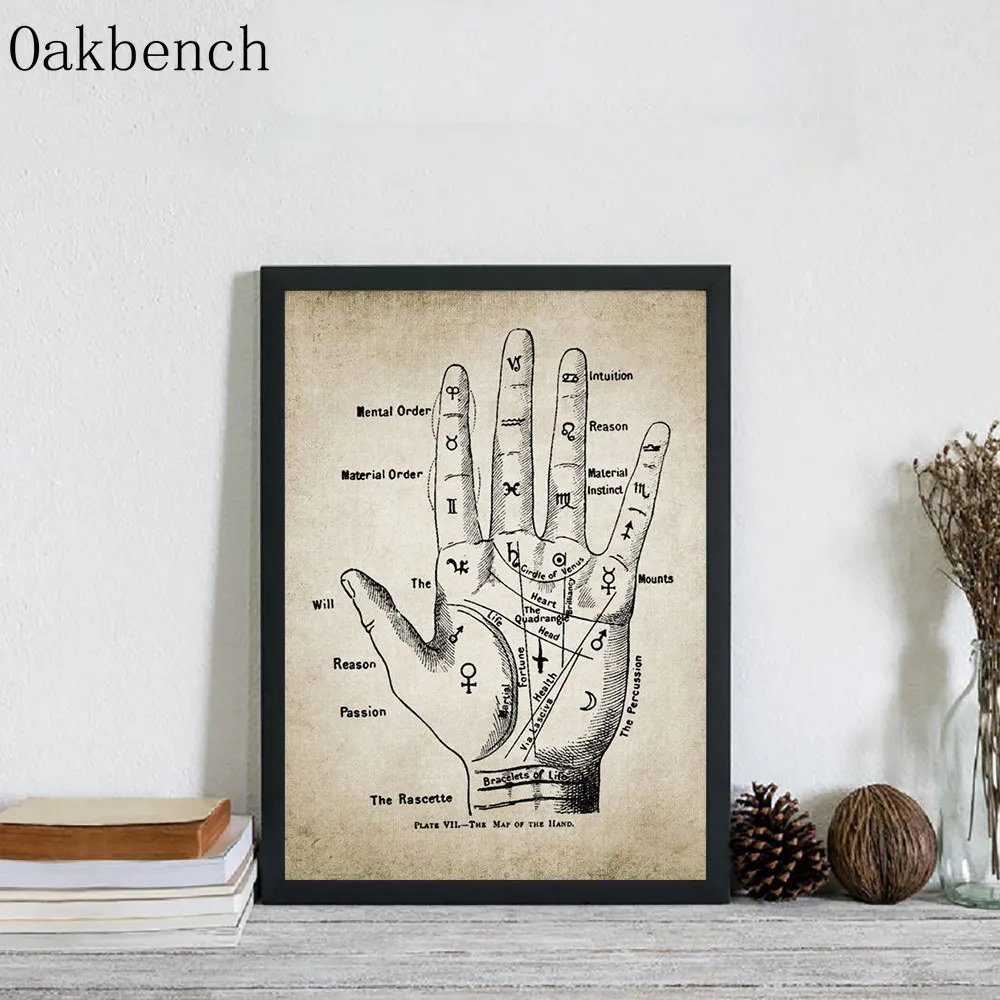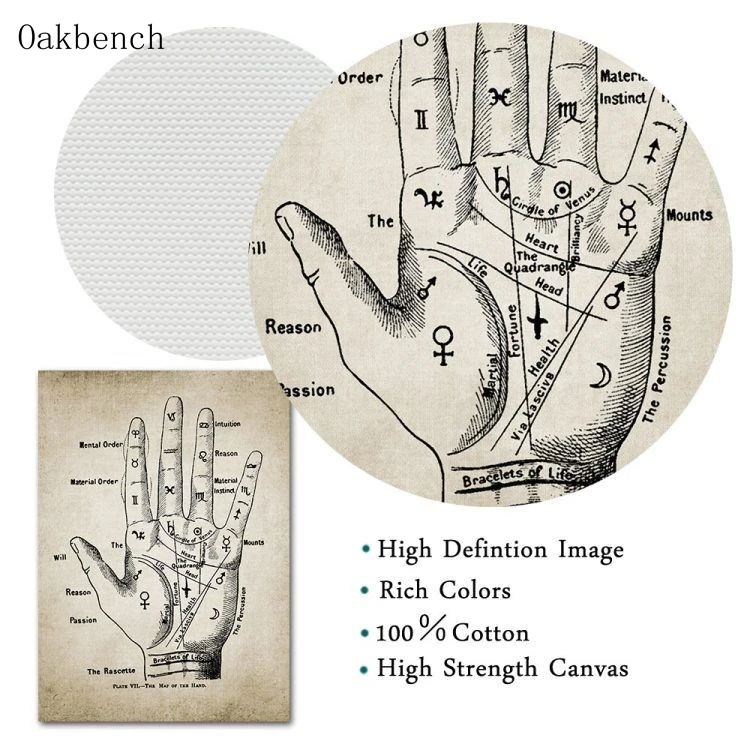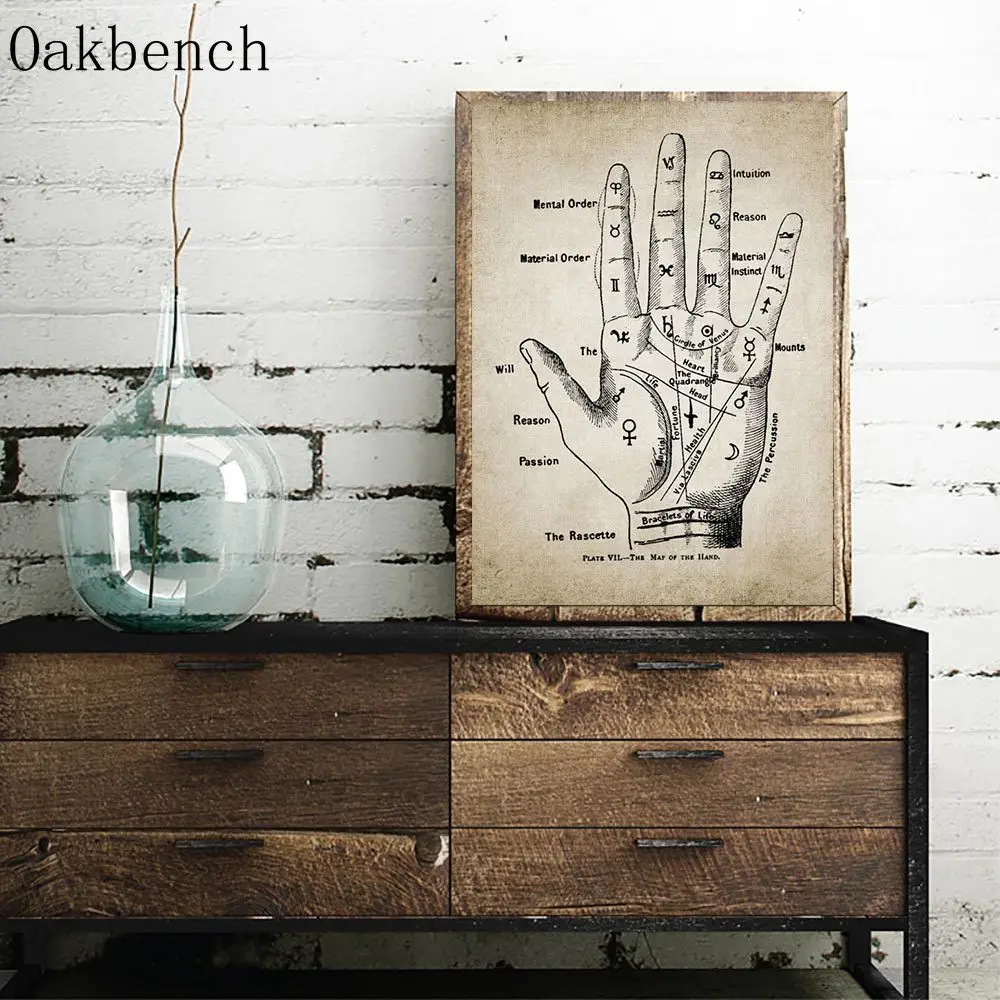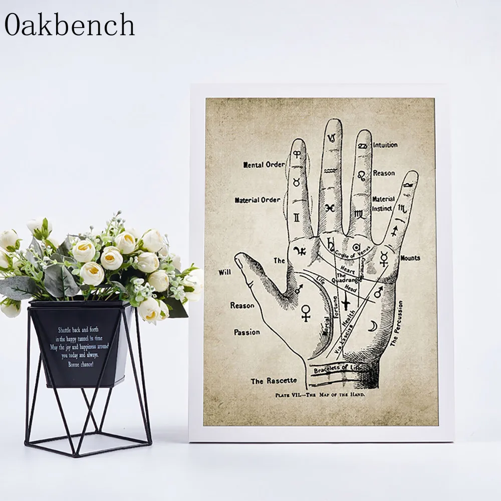 Полосатая ручная роспись, ретро-Принт для чтения ладоней, настенные картины, Декор для дома