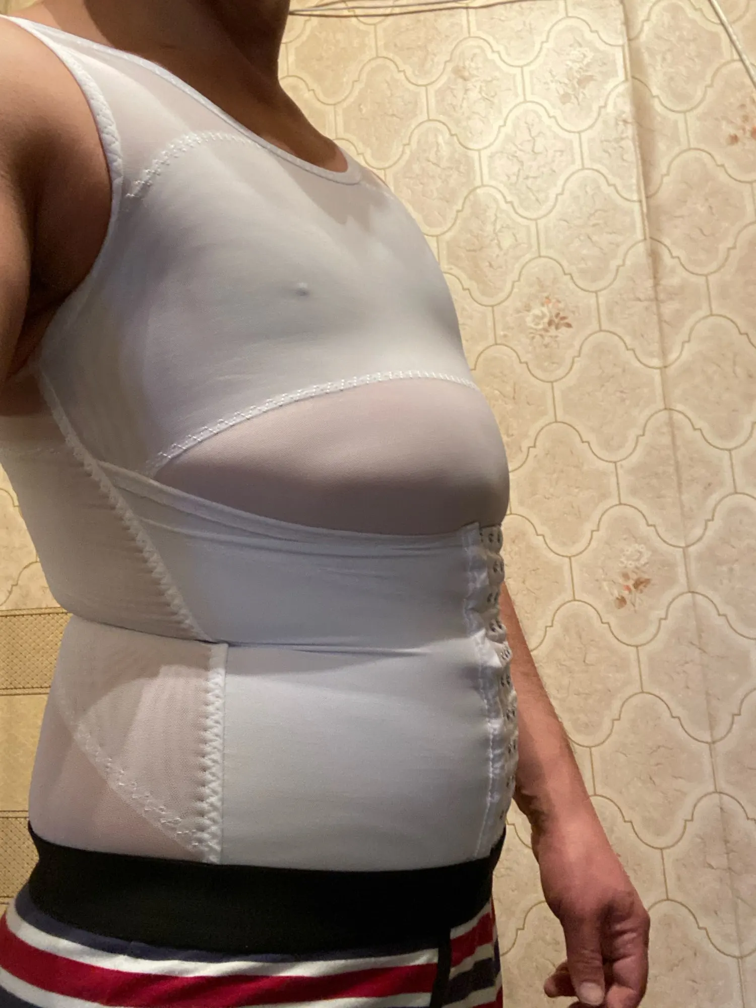 Маечка просто отличная! Бока утянуло эффект есть. На 50/52 взял xl одевать нужно через ноги.