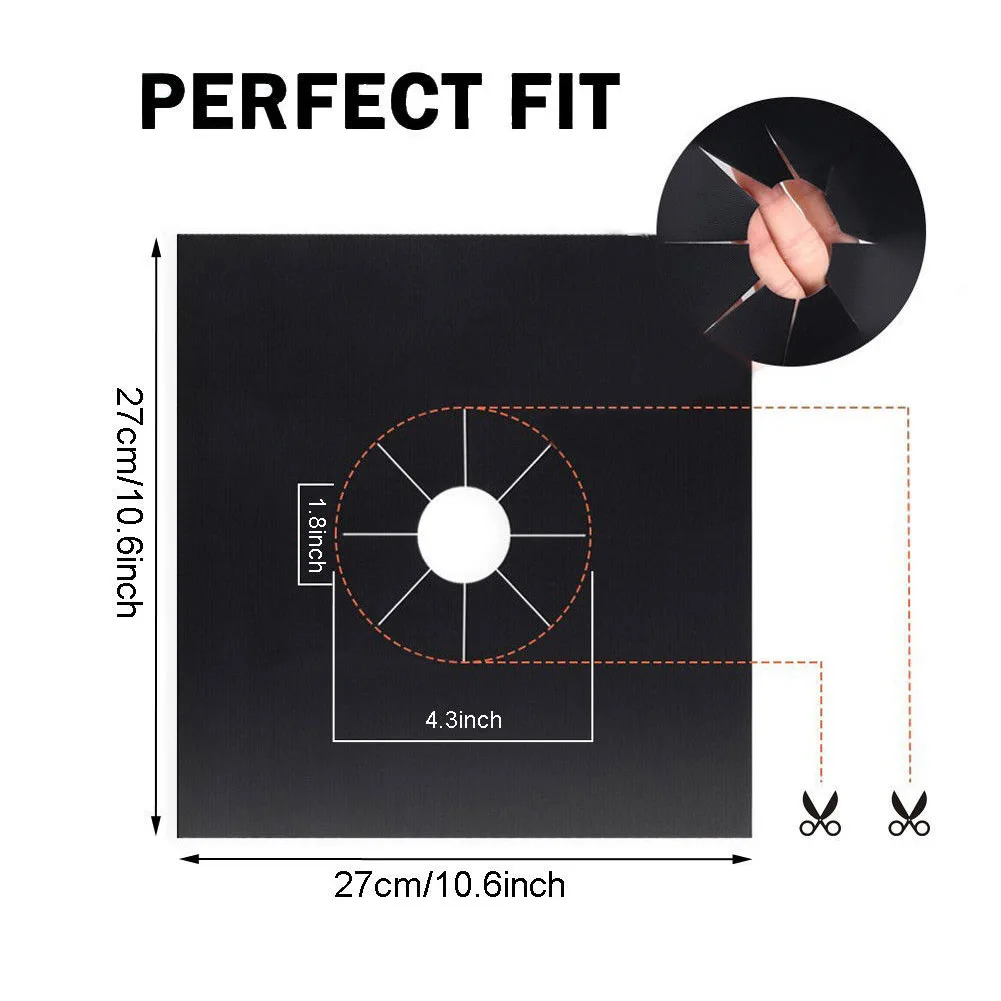 Подходит практически для всех газовых плит и не прилипает. Ткань из стекловолокна покрыта тефлоном высокого качества, который может легко удалять масляные пятна и пятна на поверхности и может использоваться повторно. Предотвращает разливы масла от проливания над газовой плитой во время приготовления пищи. Диапазон высоких температур, обычная температура-70-260 ℃, до 380 ℃. Безопасная для использования в посудомоечной машине, Нетоксичная, безопасная для контакта с пищевыми продуктами и антикоррозийная функция Параметры: Материал: стекловолокно Размер: прибл. 270x270 мм/10,6x10,6 дюймов Цвет: черный, серебристый Пожалуйста, обратите внимание: Для газовой плиты поместите Защитные пленки под решетку горелки под пламенем. Отверстие протектора должно быть обрезано ножницами для правильной установки газовой плиты перед использованием. Посылка включает в себя: 4 x защитное покрытие для газовой плиты