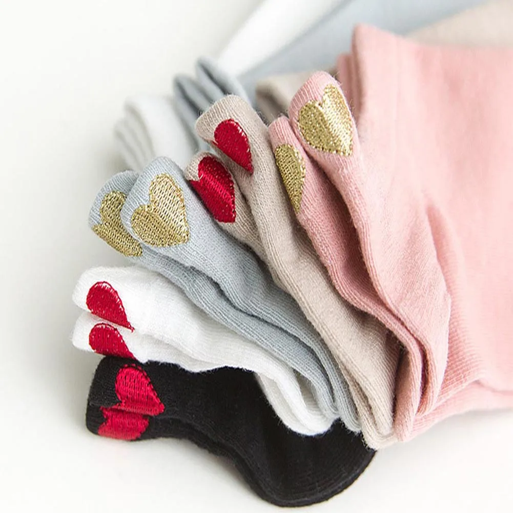 Носки женские хлопковые до щиколотки, модные повседневные, цветные Смешные с милыми сердечками для девушек, 1 пара, на весну