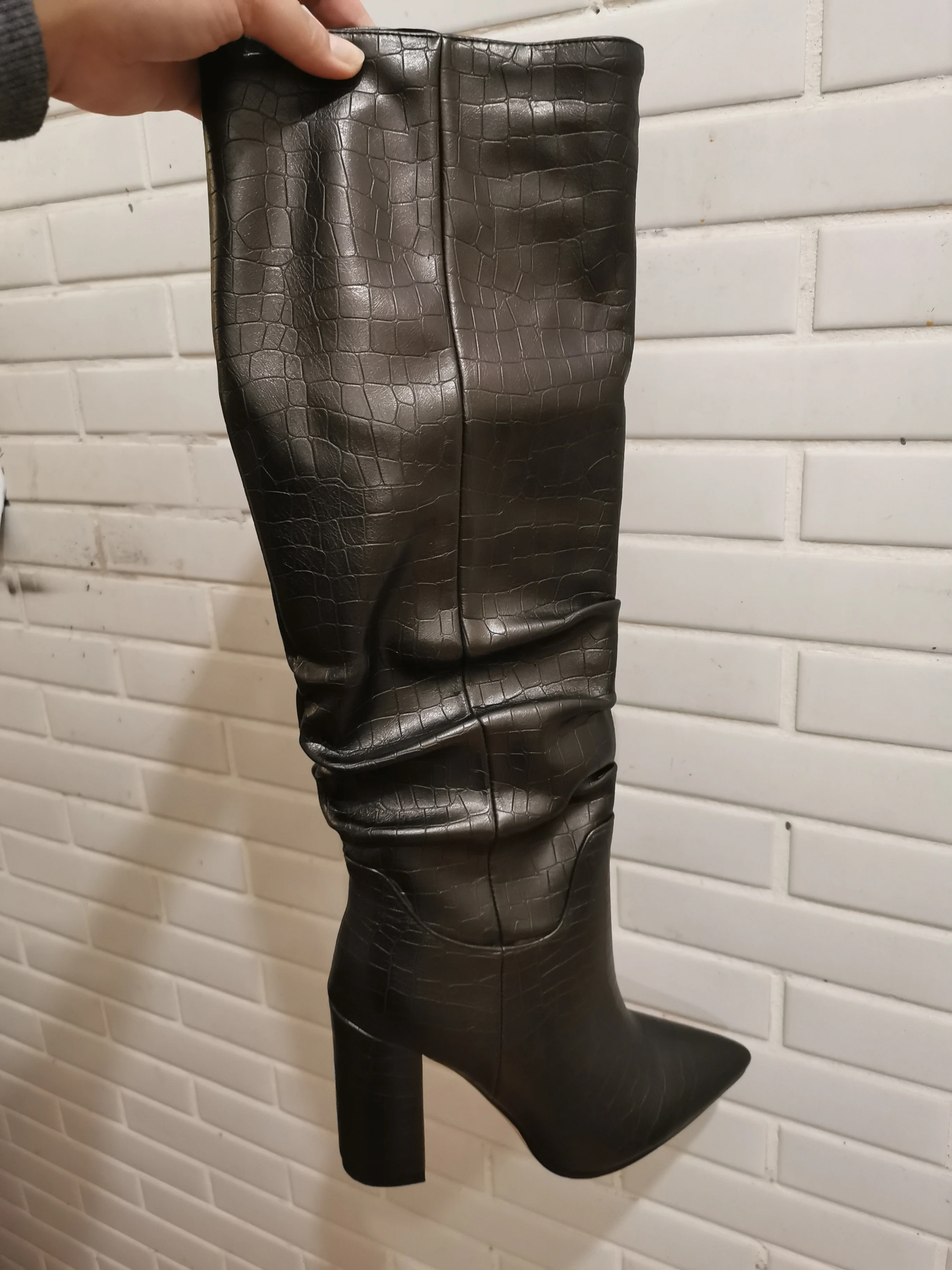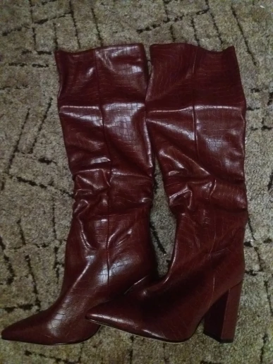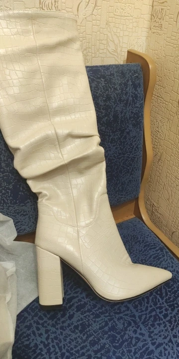 Сапожки очень классные,есть не большой запах,надеюсь пройдёт,колодка достаточно удобная,на рост 157 по коленно,ещё не выгуливала,надеюсь не разочаруюсь,если все понравится закажу ещё в чёрном