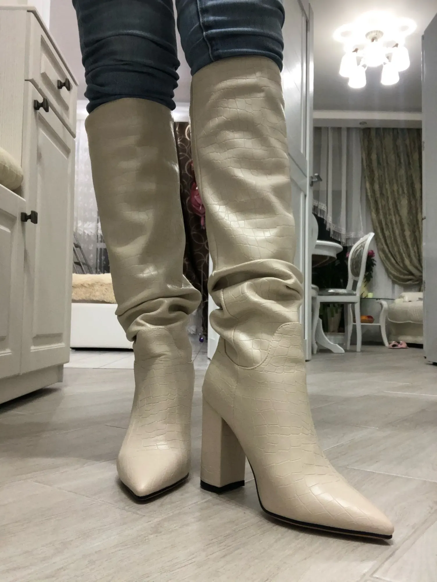 сапоги просто чудесные. точь-в-точь как на картинке. очень удобные. каблук устойчивый. я в восторге.