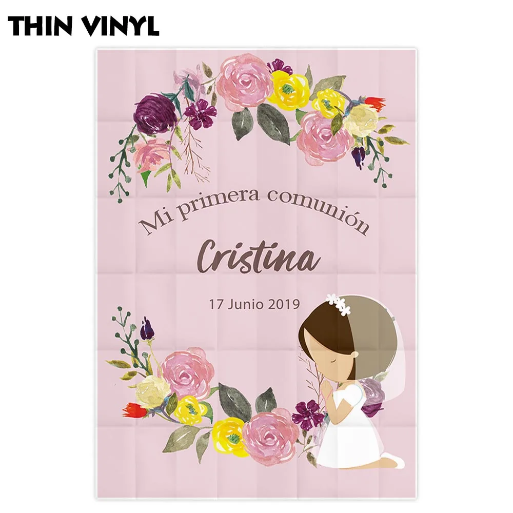 Фон для фотосъемки Allenjoy с изображением розовых цветов и девушек на Первое Святое Причастие