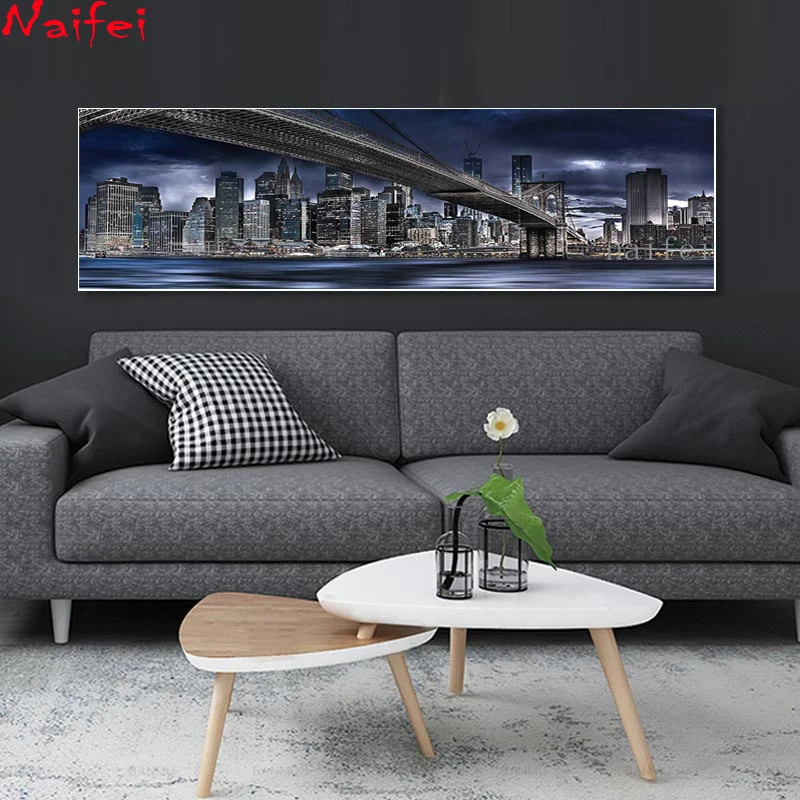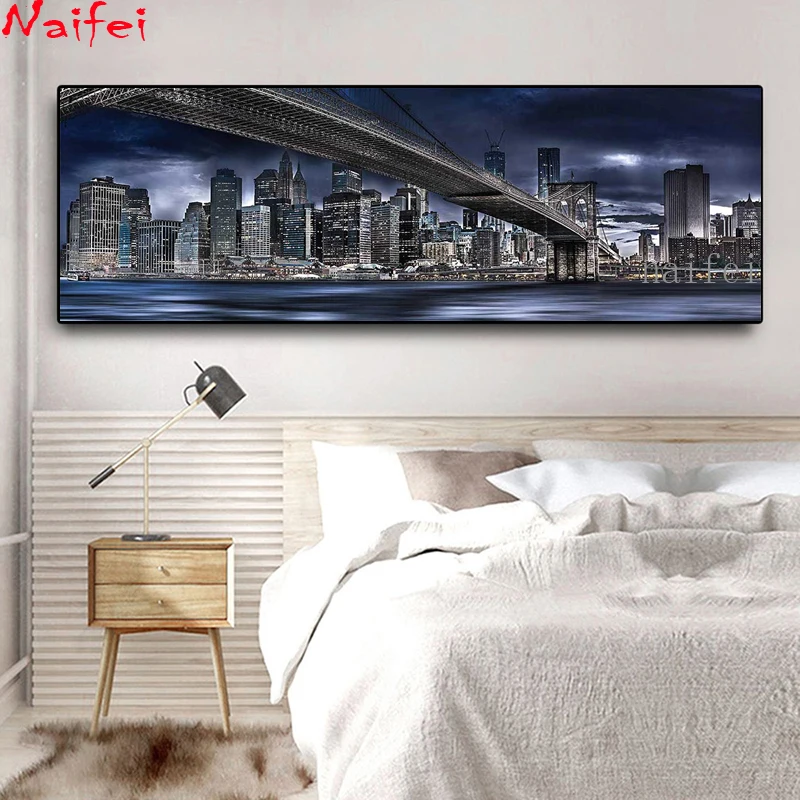 Полноразмерная алмазная живопись 5D с изображением моста, Нью-Йорк, темная ночь, алмазная вышивка, вышивка крестиком, украшение для дома, алмазная живопись