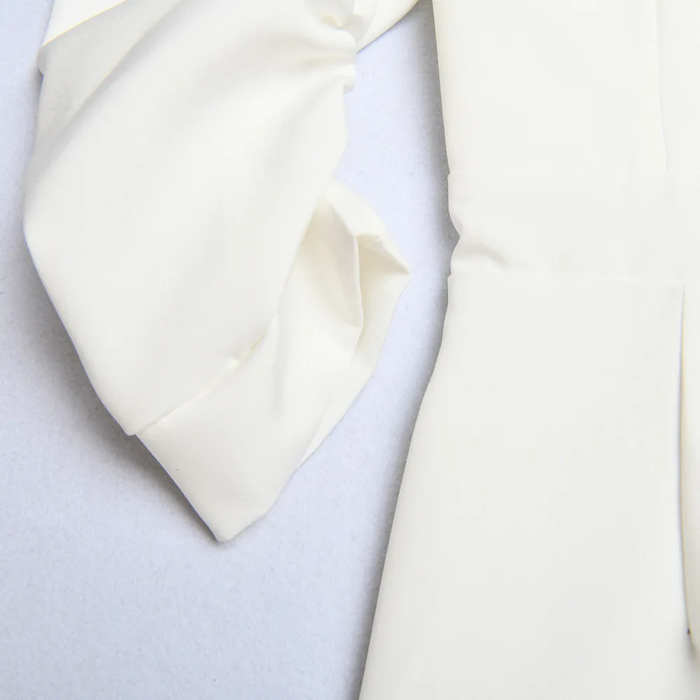 Женское белое платье-блейзер с глубоким V-образным вырезом, с пышными рукавами и открытой спиной, Элегантное зимнее платье для рождественской вечеринки