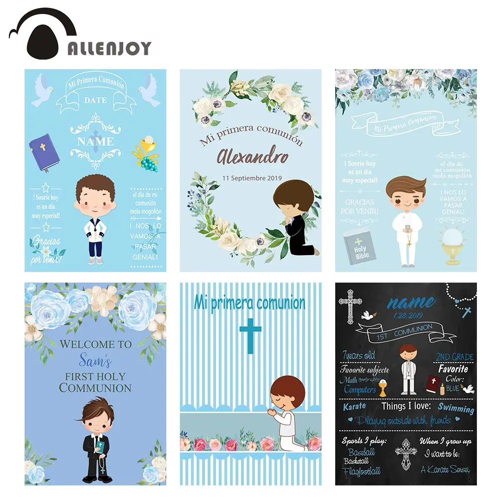 Фон Allenjoy для фотостудии с изображением голубого цветка мальчика Мое Первое Святое Причастие Библейский фон для фотосъемки