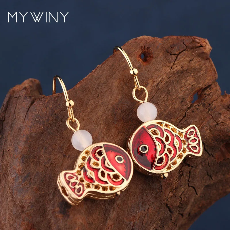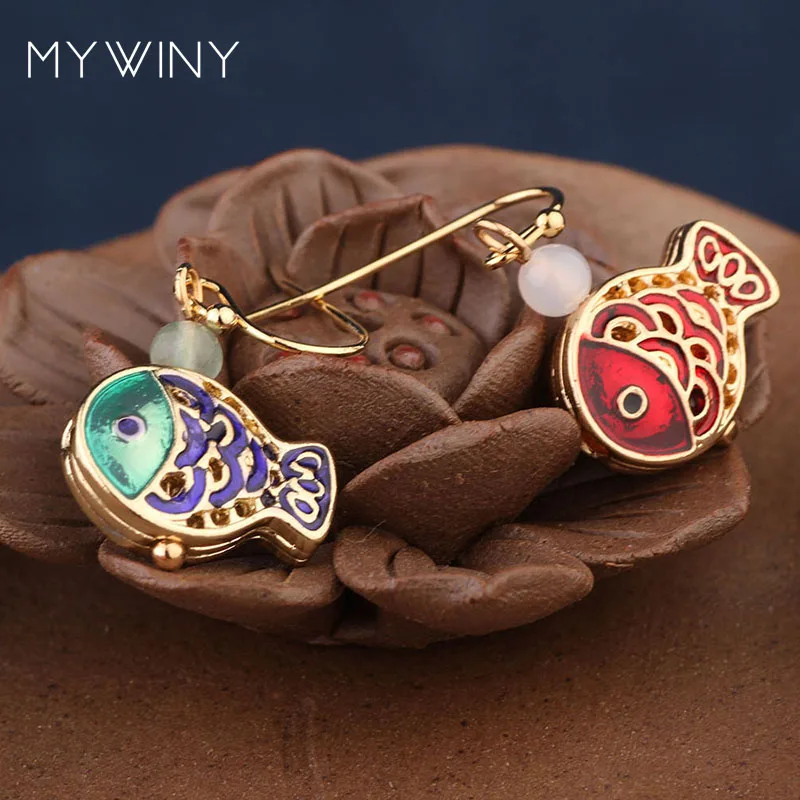 2 вида цветов MYWINY новые модные ювелирные изделия, Двойные серьги в форме рыбы, синие, эмалированные винтажные простые серьги