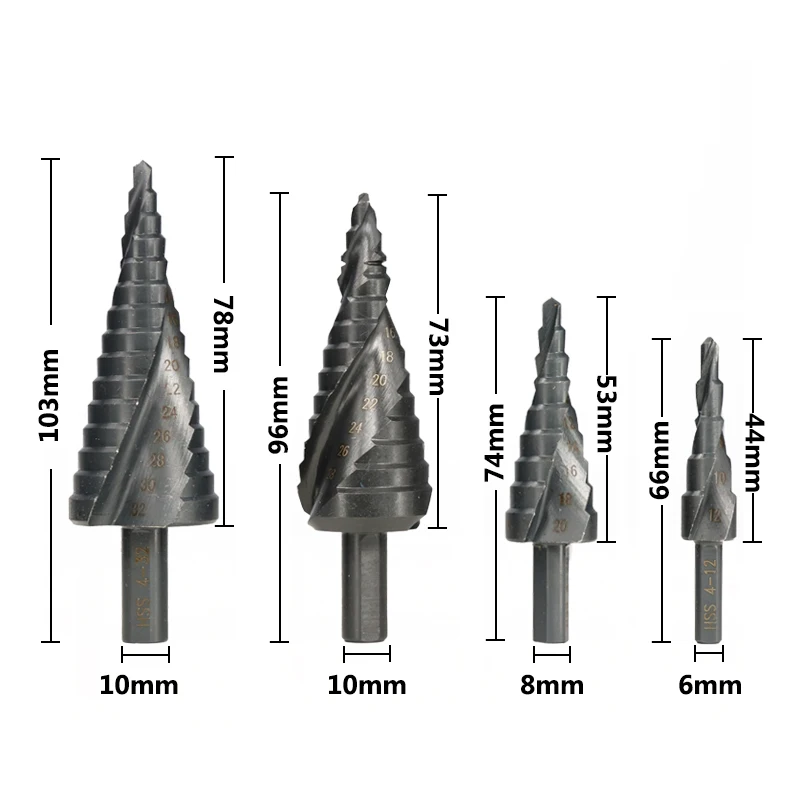 Ступенчатое Коническое сверло из быстрорежущей стали, 4-122032 мм, в форме пагоды, 6-30 мм, спиральное кобальтовое покрытие, для электроинструментов по дереву