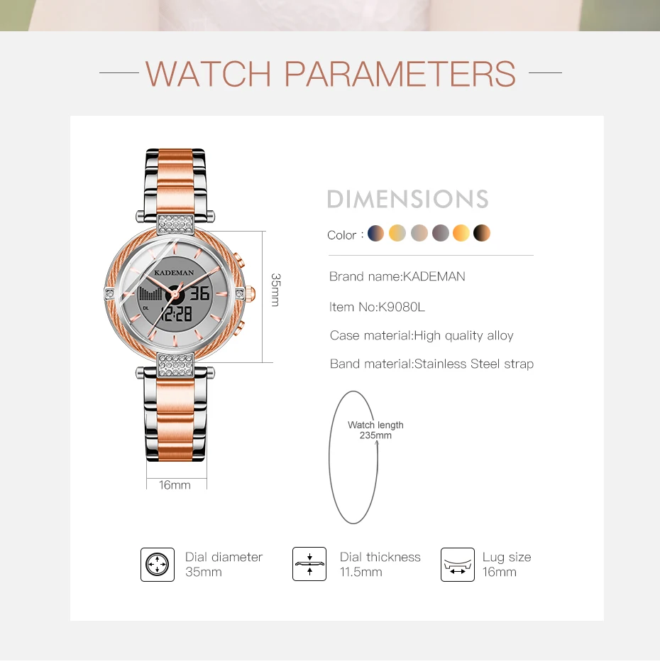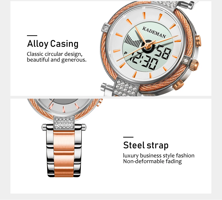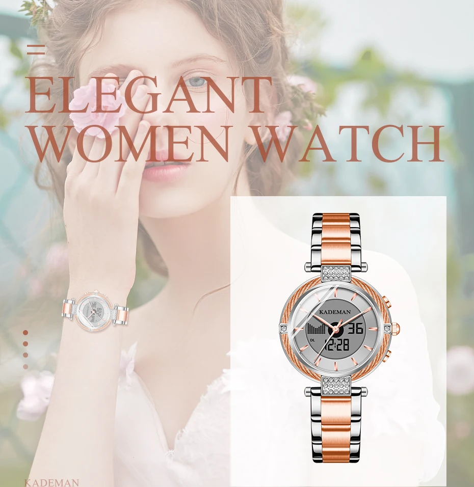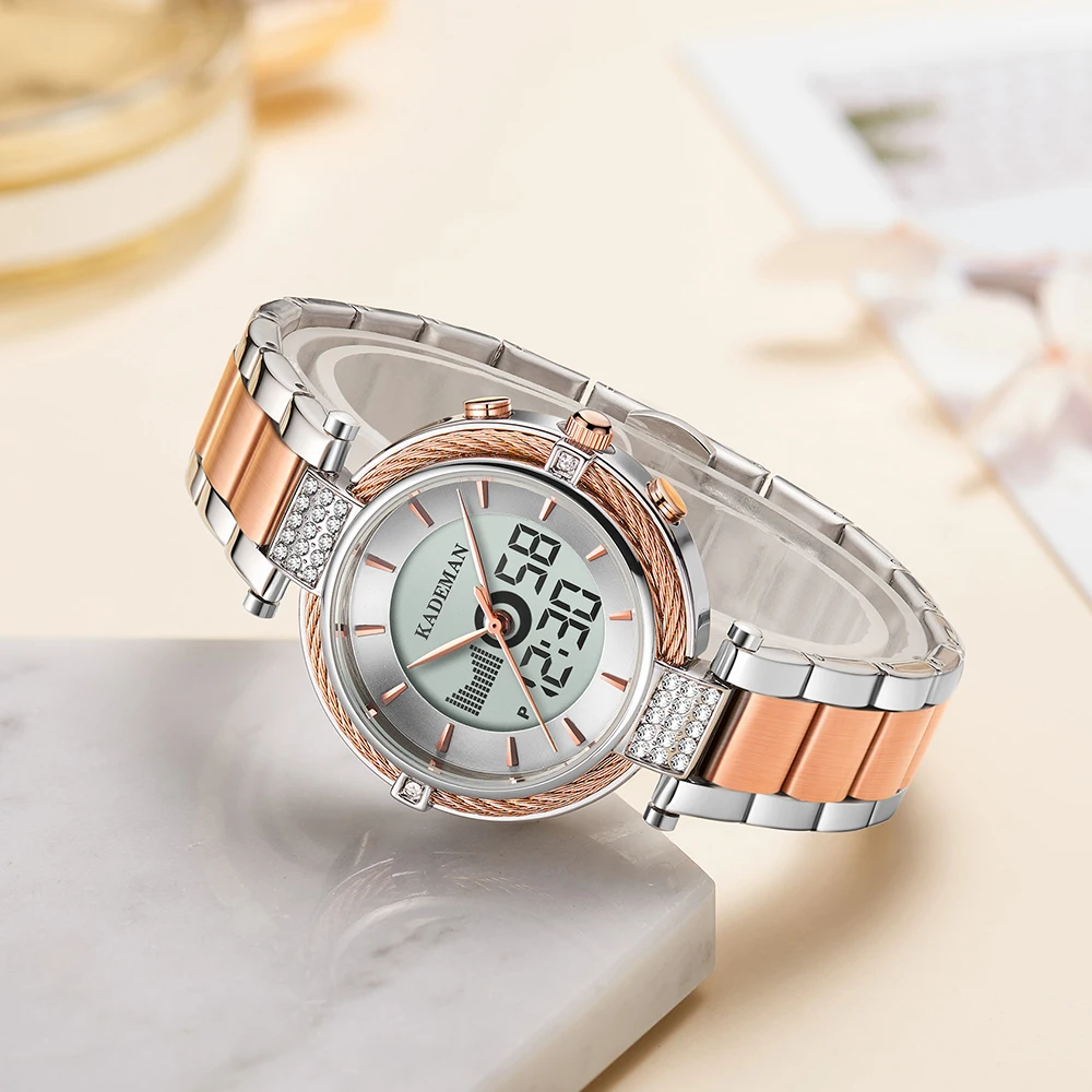 Часы KADEMAN женские с ЖК-дисплеем, роскошные новые подарки, цифровые модные брендовые элегантные деловые наручные часы для девушек