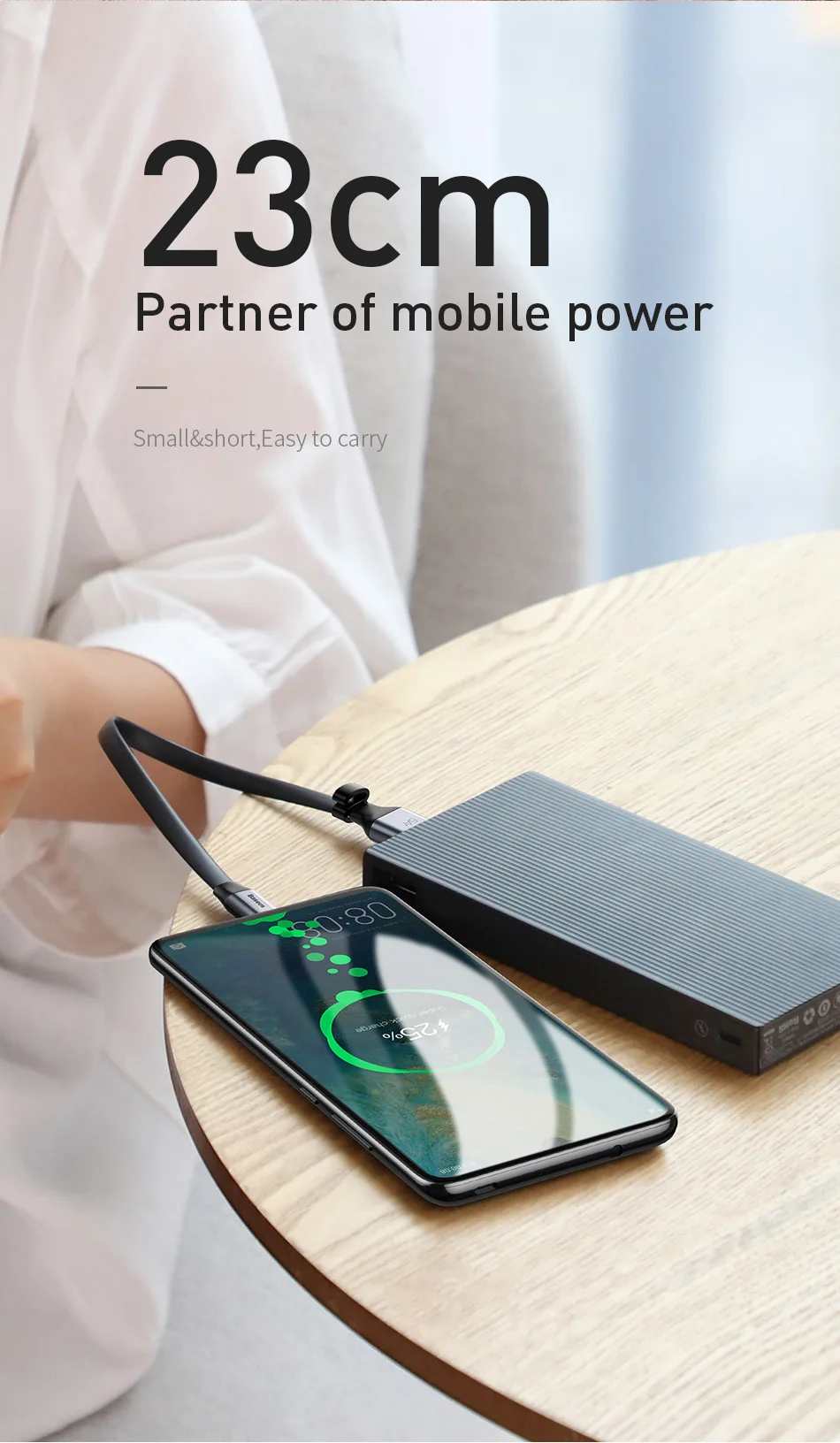 Кабель Baseus 23 см 5 А USB Type-C для Huawei P30 P20 Mate 30 20 P1...