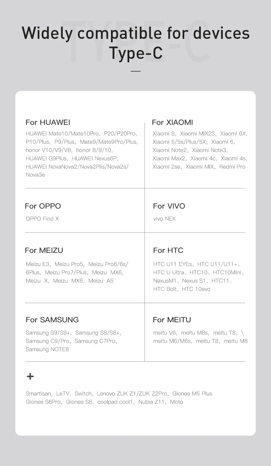 Feature 3For Samsung Galaxy S10 S9 S8 Plus Note 8 9 ZUK Z2 Z3 LG G5 USB C Cable