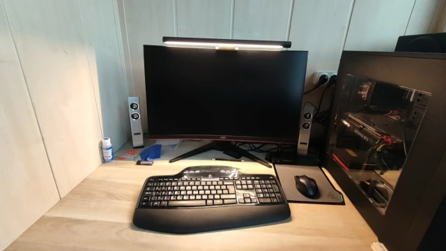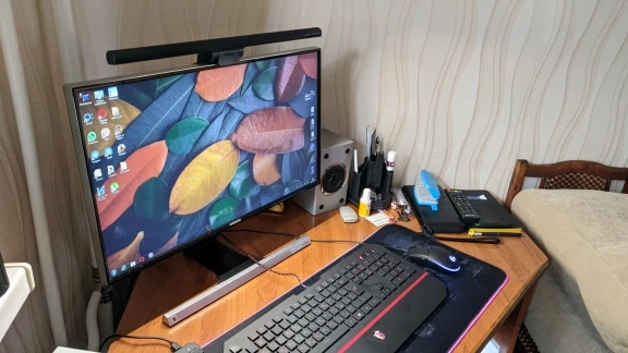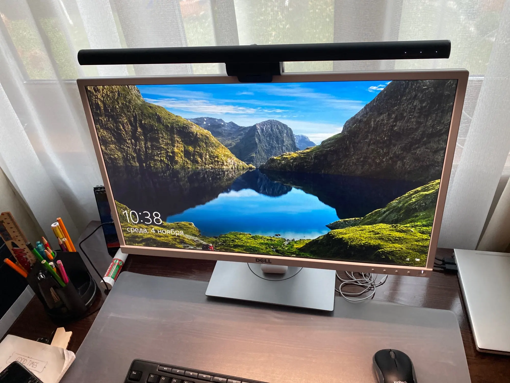 Отличная лампа, на Dell 38" изогнутый встала отлично, освещает все как описано рабочее место, в глаза ничего не светит. единственное чуть перекошена, приходится поправлять. а так качество на вид очень хорошее