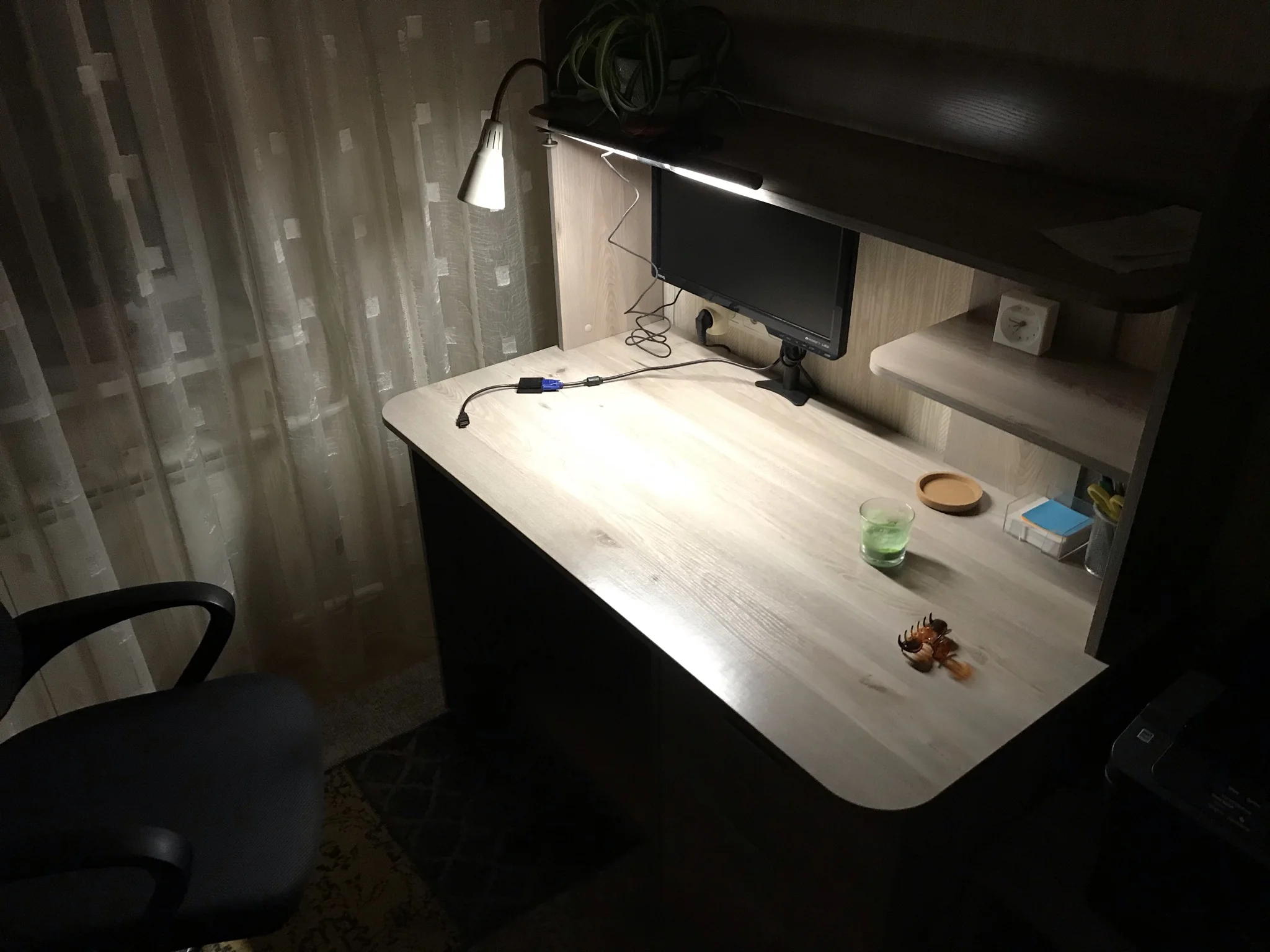 17 января заказал, 30 получил в постамате СПб Лампа хорошая, стильная, с работой своей справляется. Настроил яркость и цветовую температуру. Шнур Type-C Но от старой лампы избавиться не удалось, сбоку подсвечивает теперь.